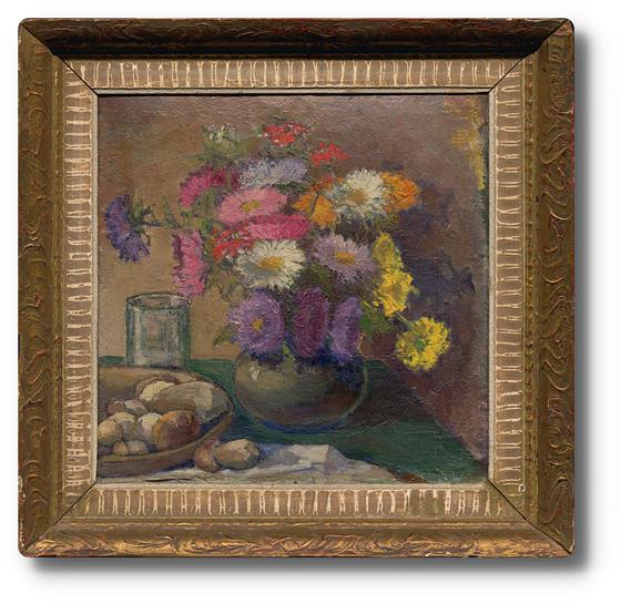 134. Zátiší s květinami a dózou