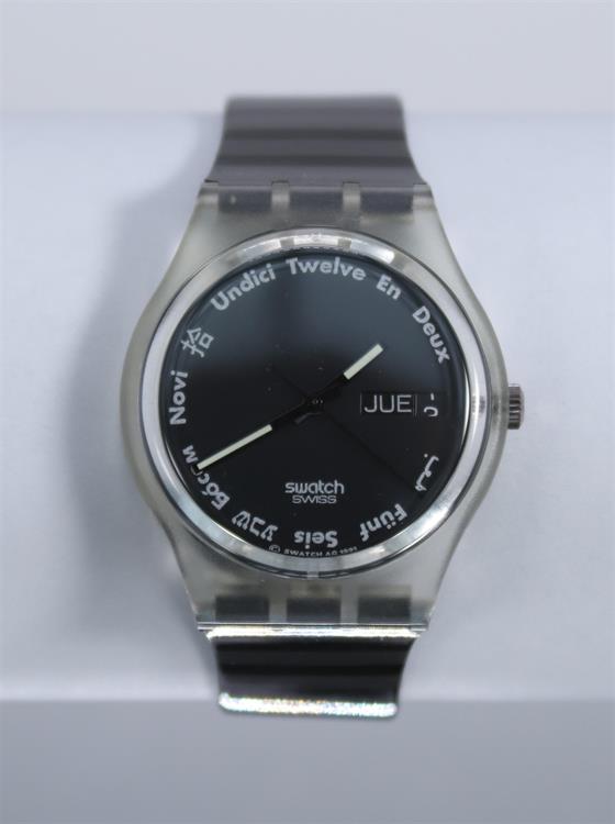 Aukční přirážka v této aukci je 28%121. Hodinky Swatch - Gutenberg Montreux