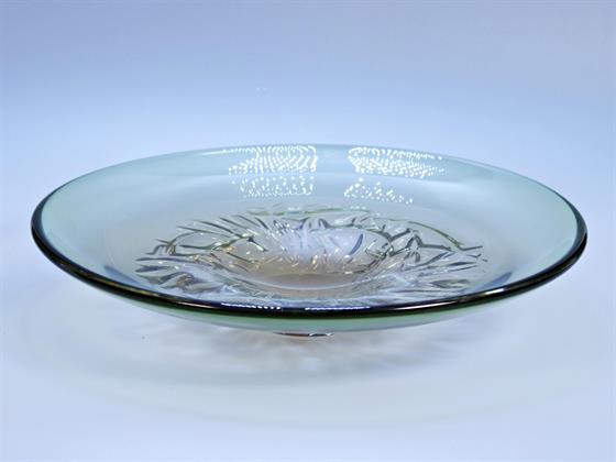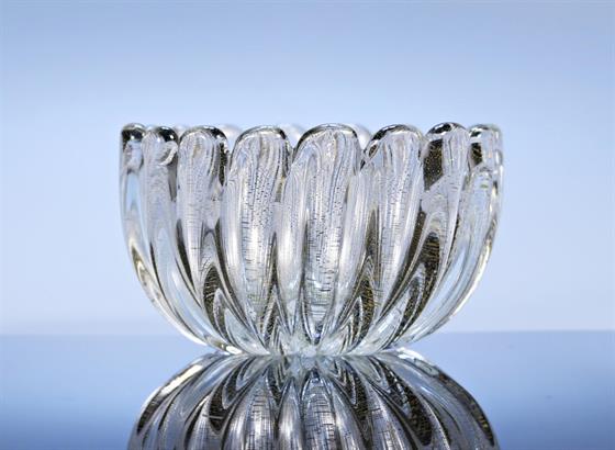 35. Skleněná nízká váza z čirého skla ve tvaru květu