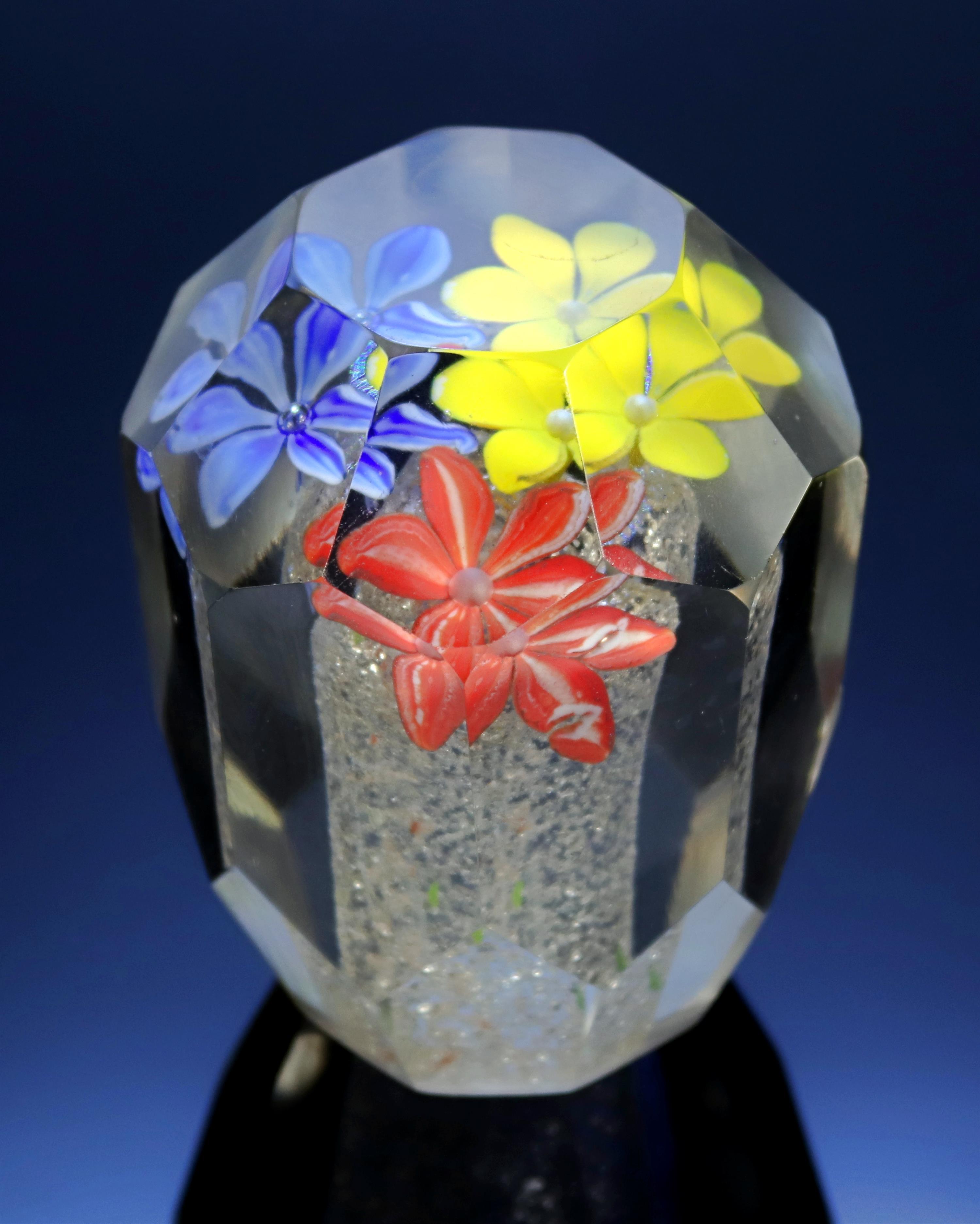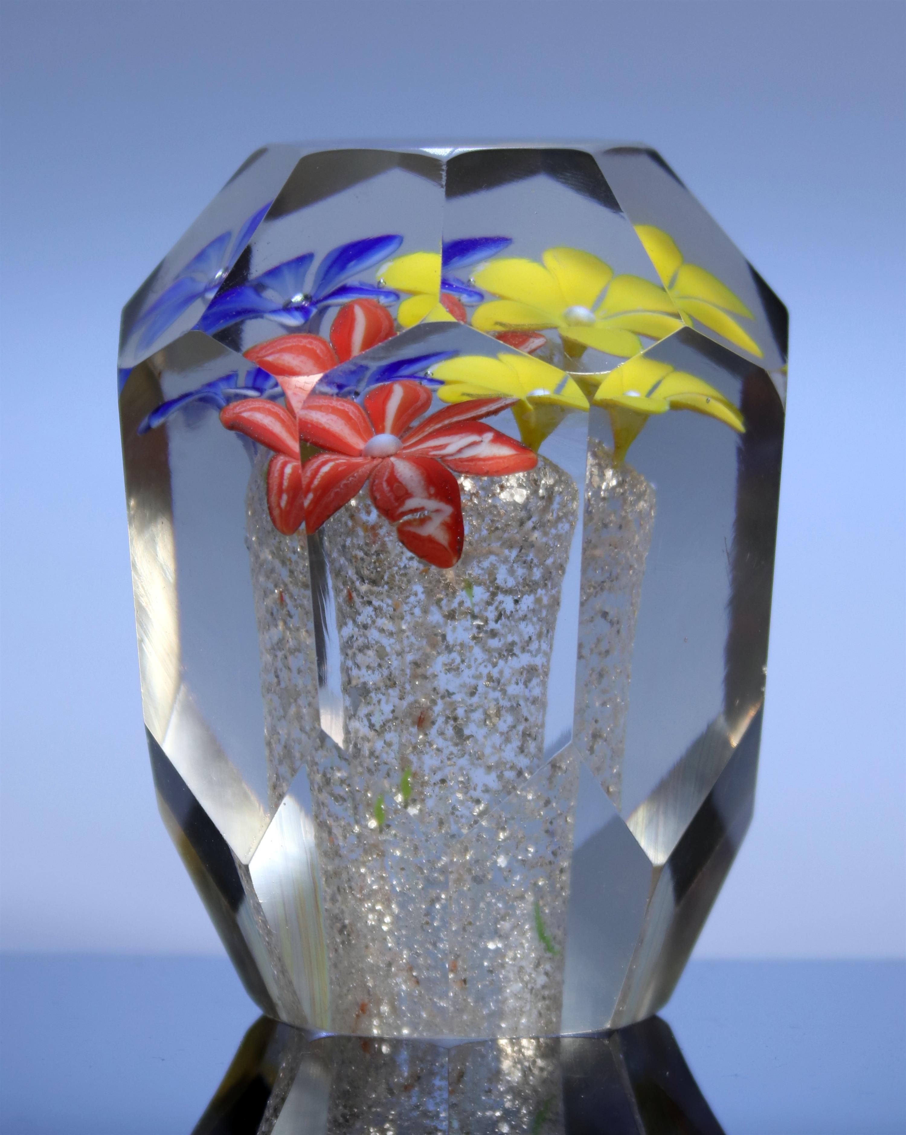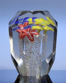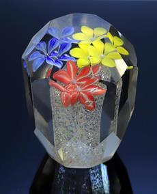 Skleněné těžítko osmiboké s třemi květy