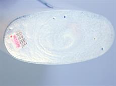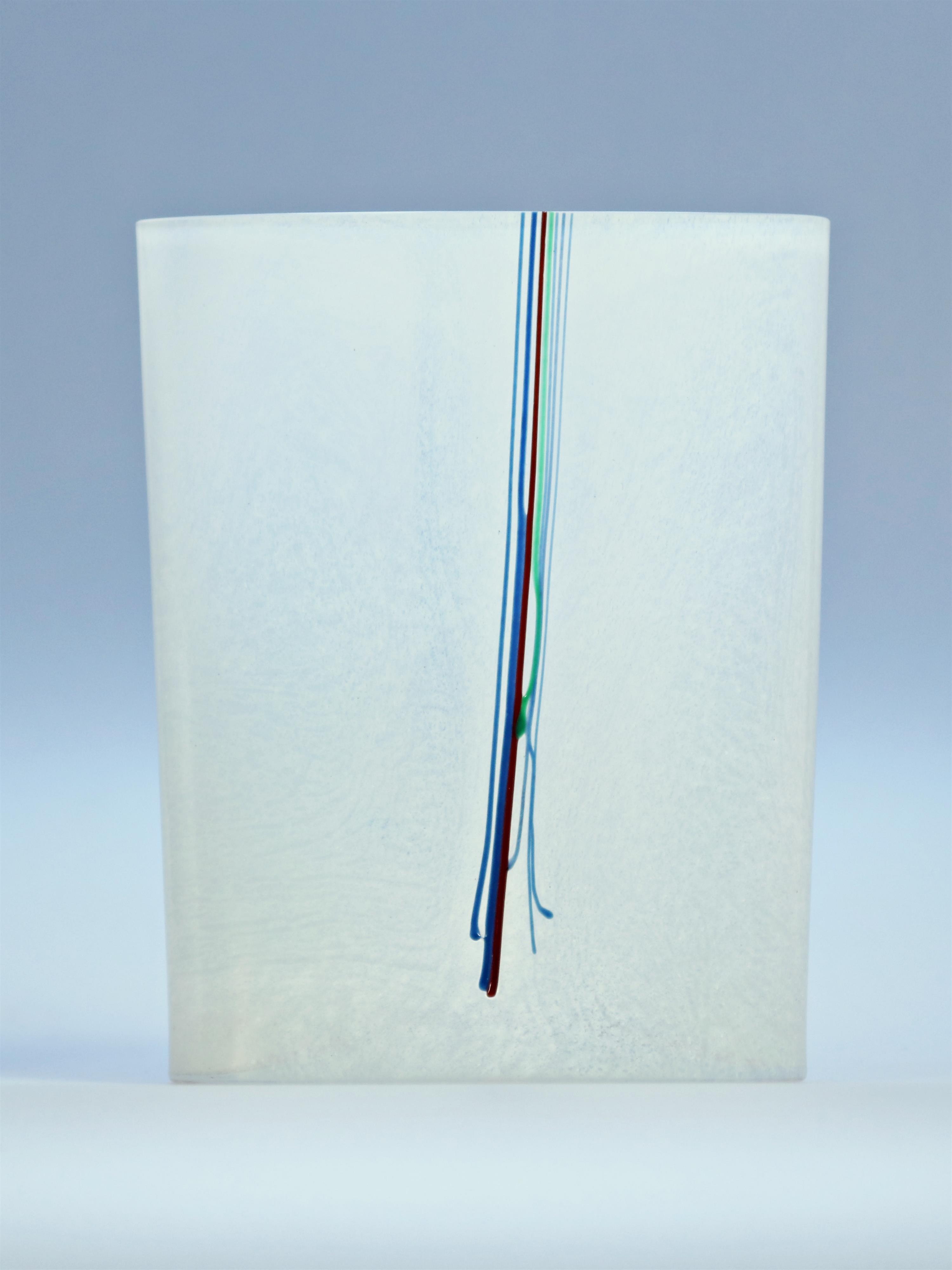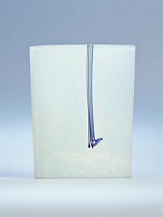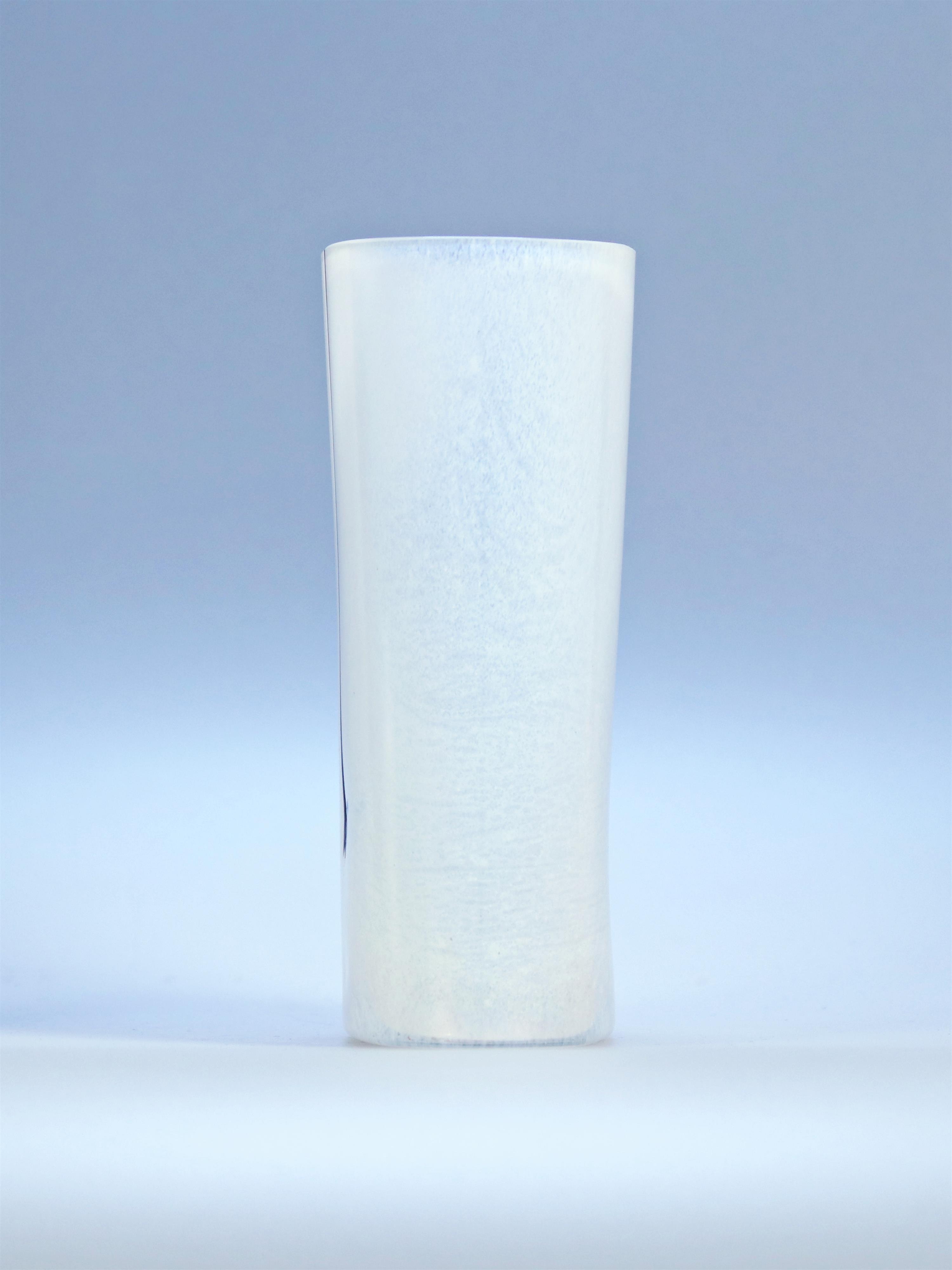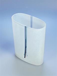 Skleněná váza bílá oválná s ozdobnými svislými proužky