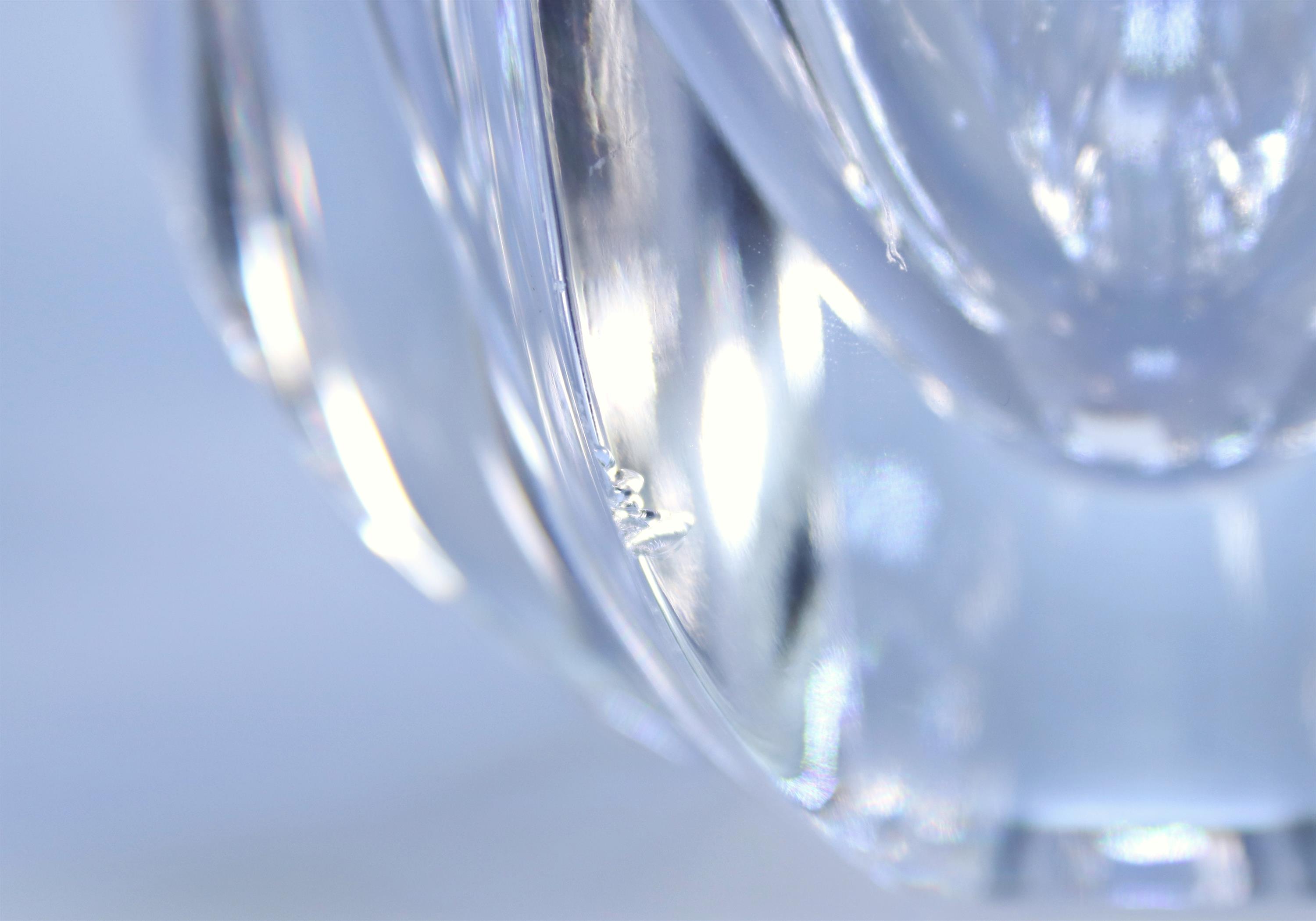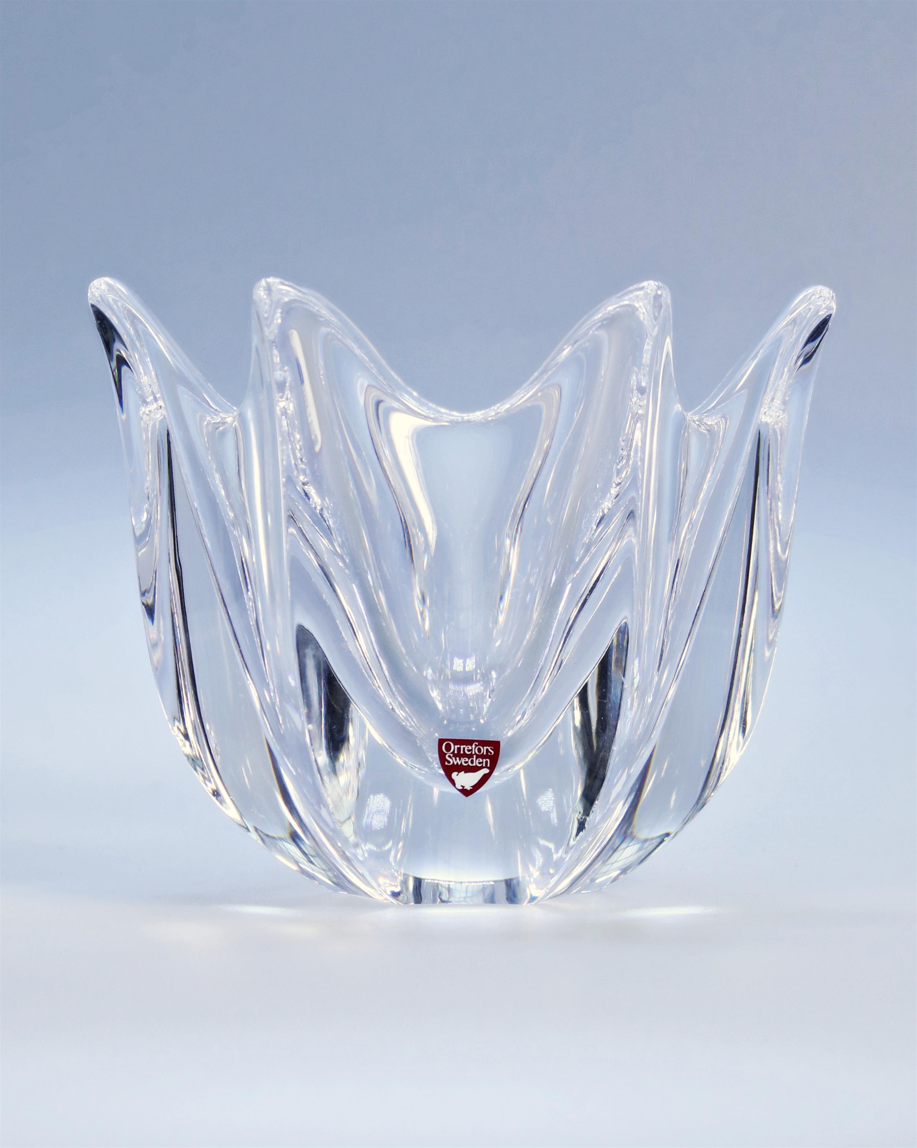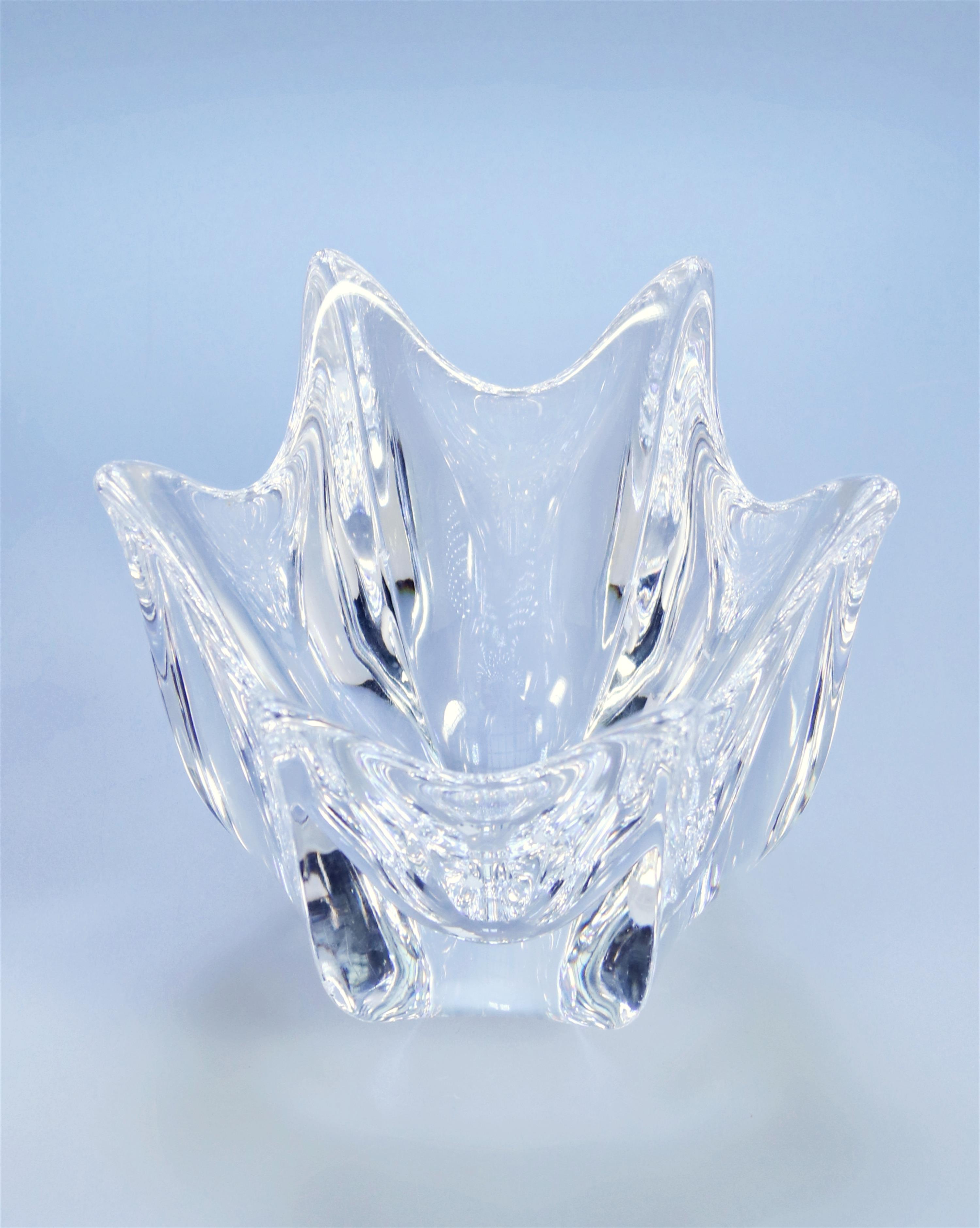 35. Skleněná nízká váza z čirého skla ve tvaru květu