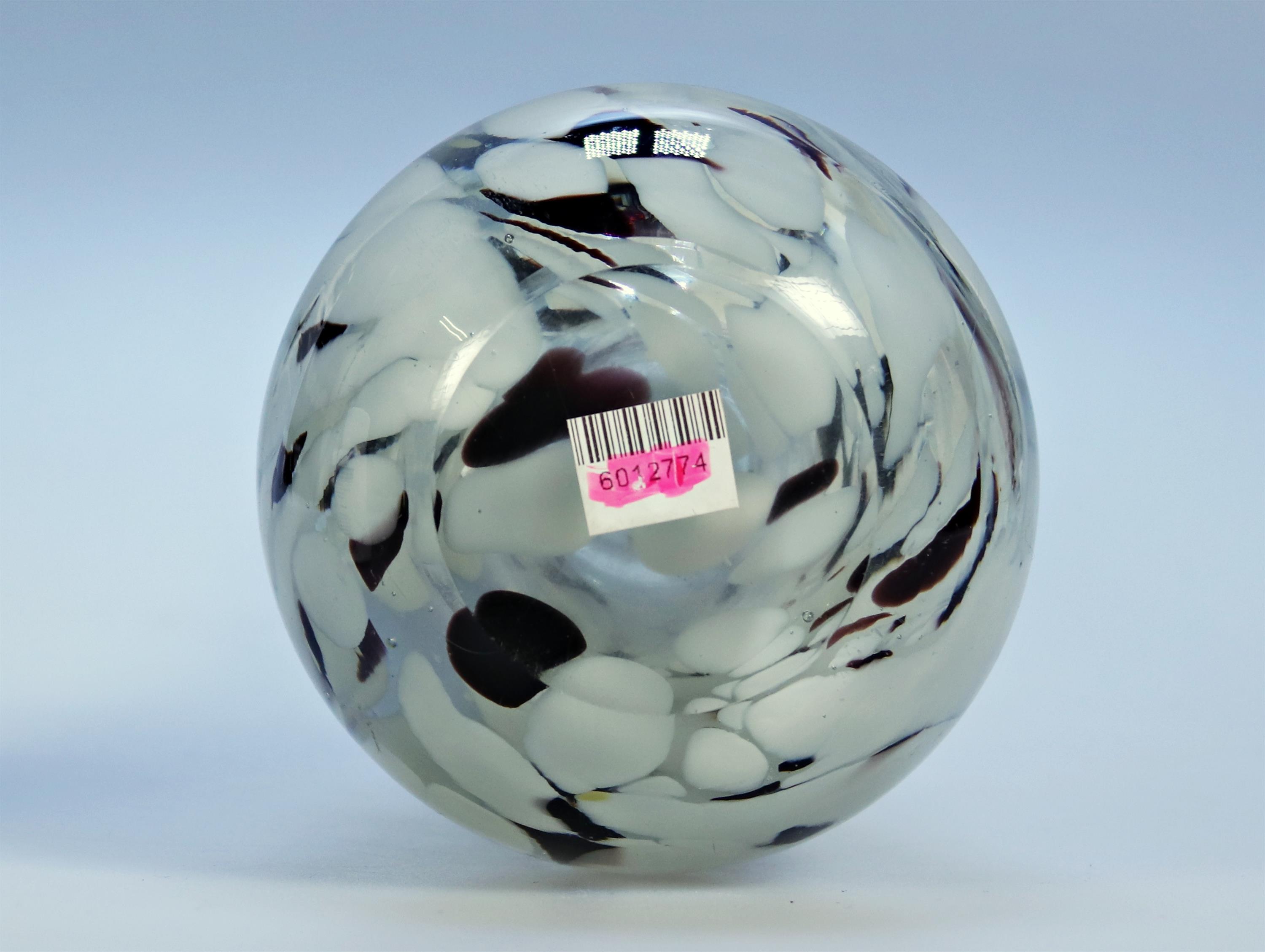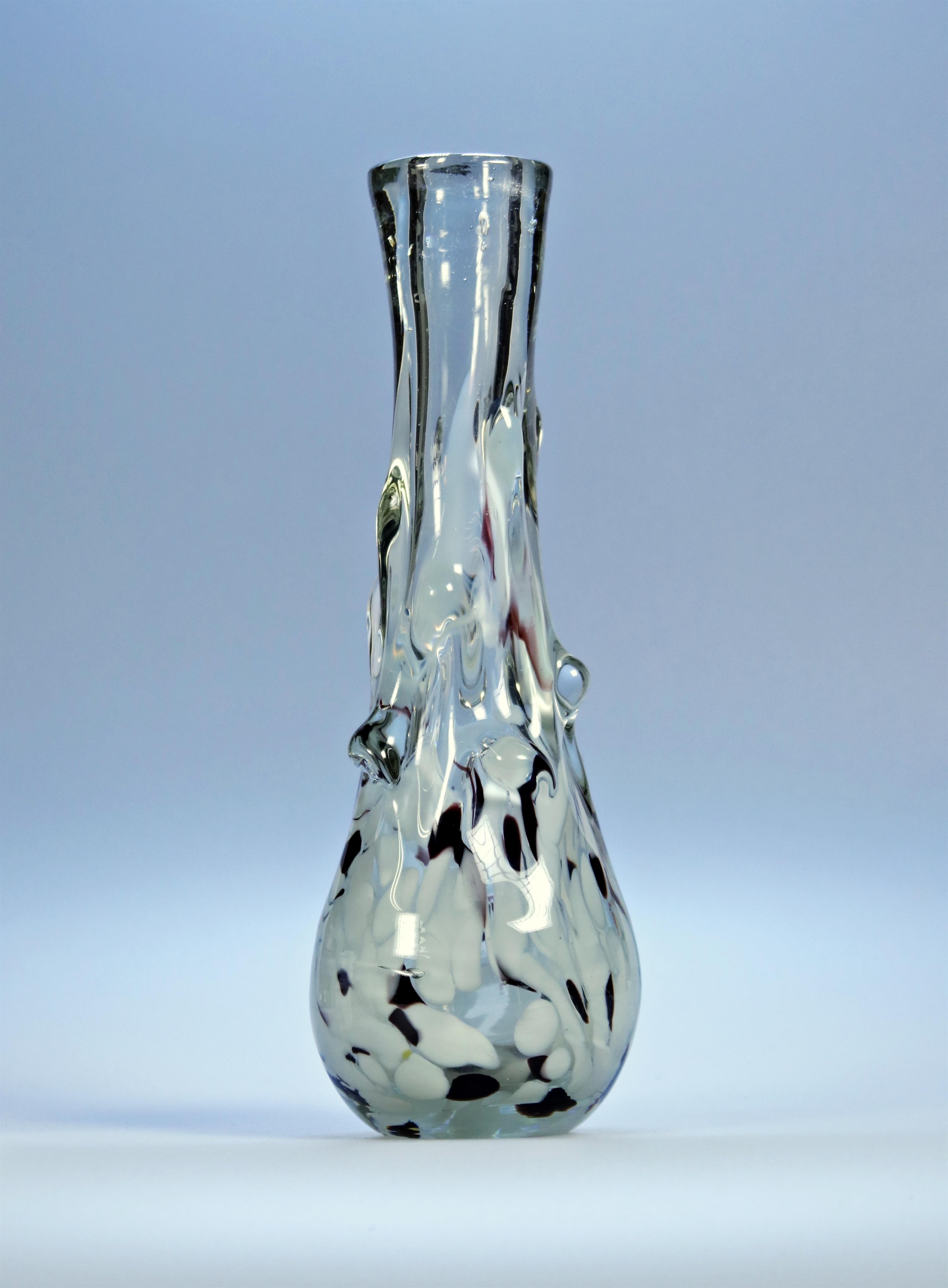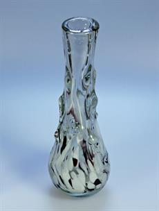 Skleněná váza z čirého skla s bílo fialovými aplikacemi