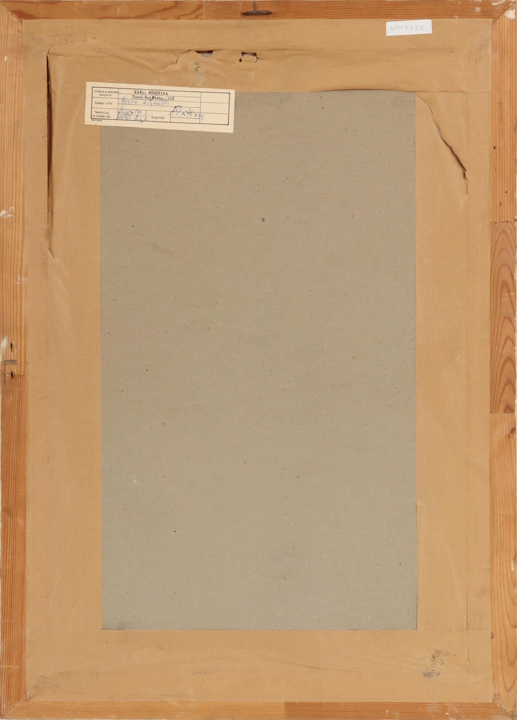 signováno vpravo dole, zaskleno, rámováno, na reversu autorský štítek