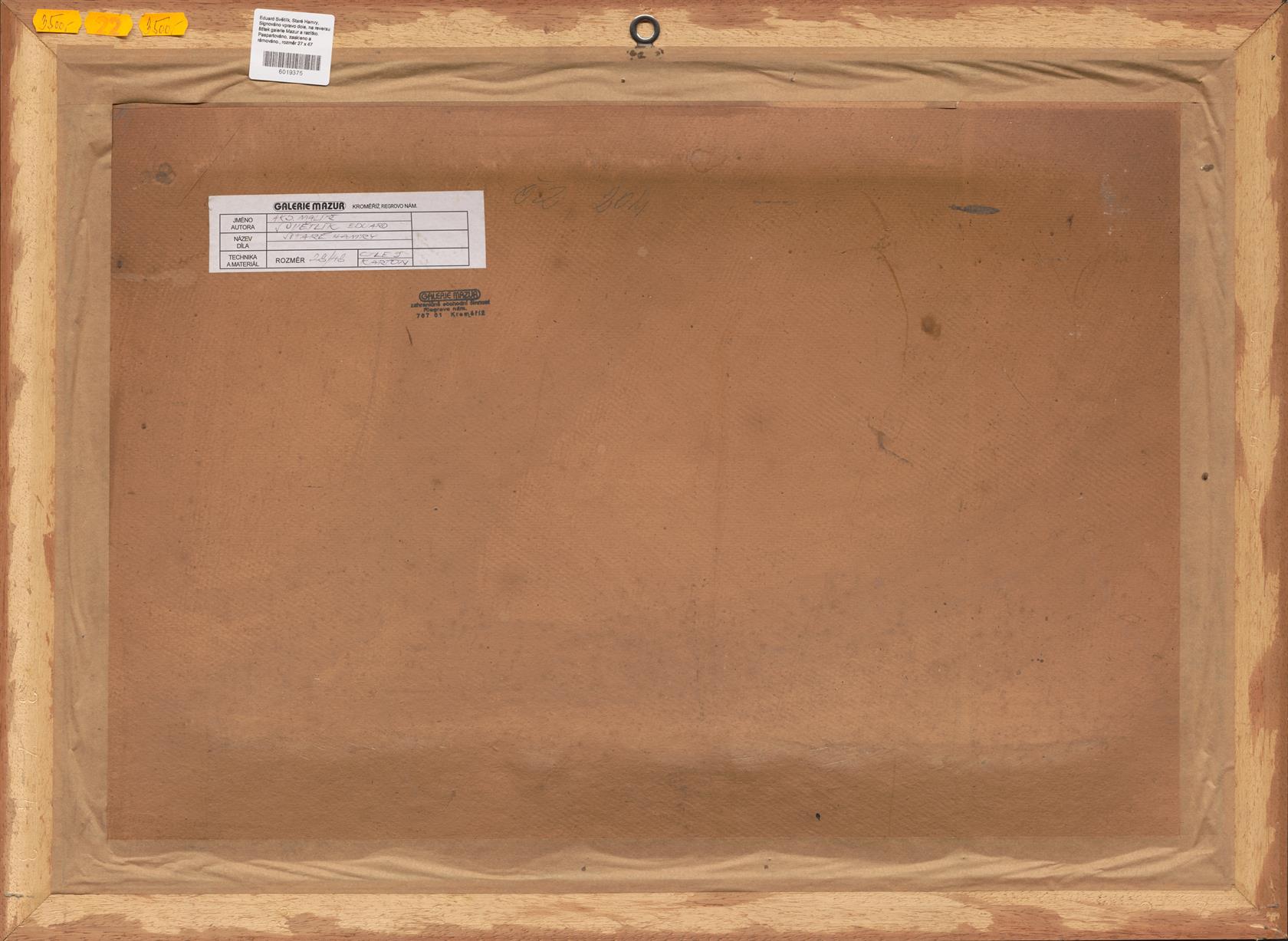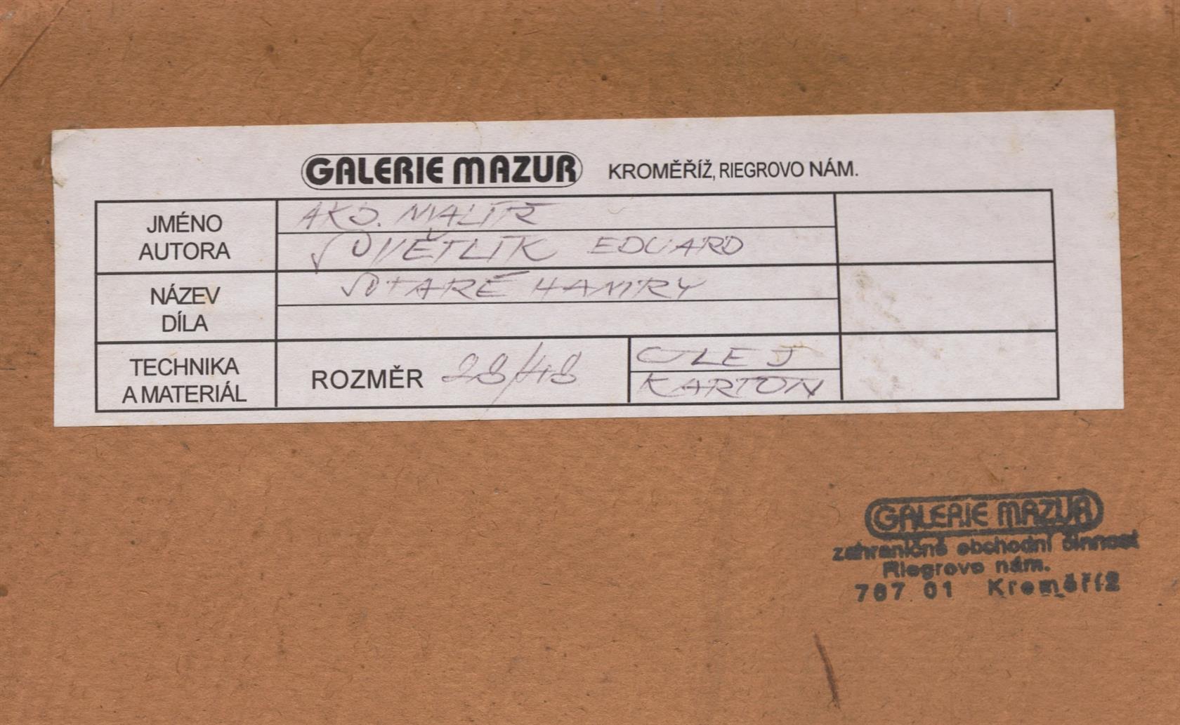 Signováno vpravo dole, na reversu štítek galerie Mazur a razítko. Paspartováno, zaskleno a rámováno.