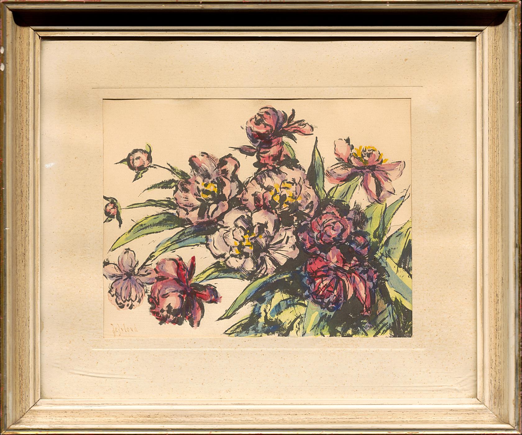 signováno vlevo dole, paspartováno, zaskleno, rámováno