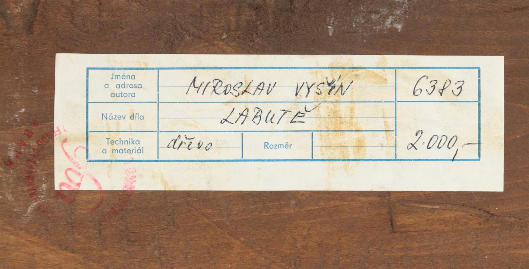 Na reversu autorský, štítek, osvědčení o původu originálu ČFVU přiložen