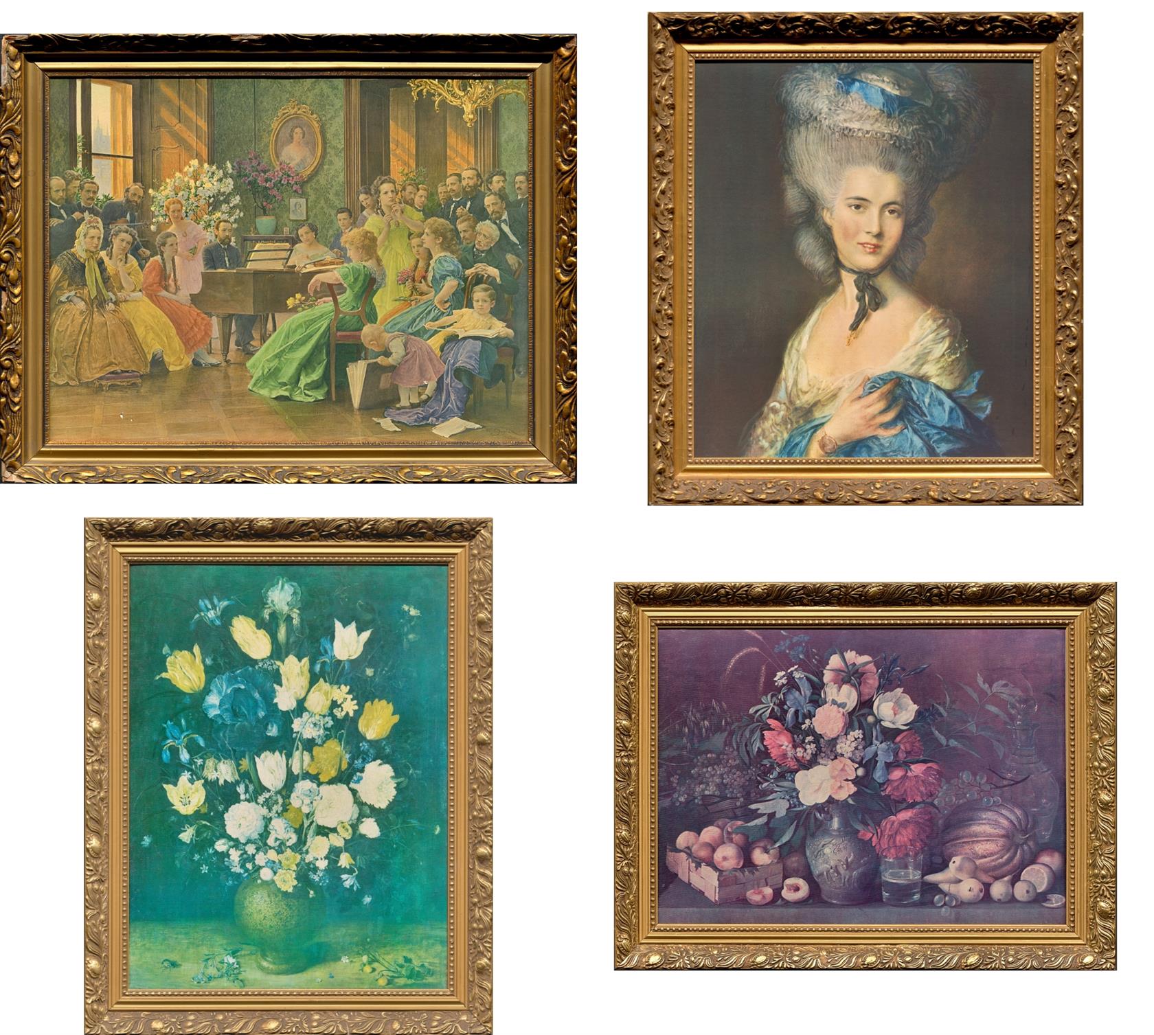 soubor obrazových reprodukcí v dřevěných rámech