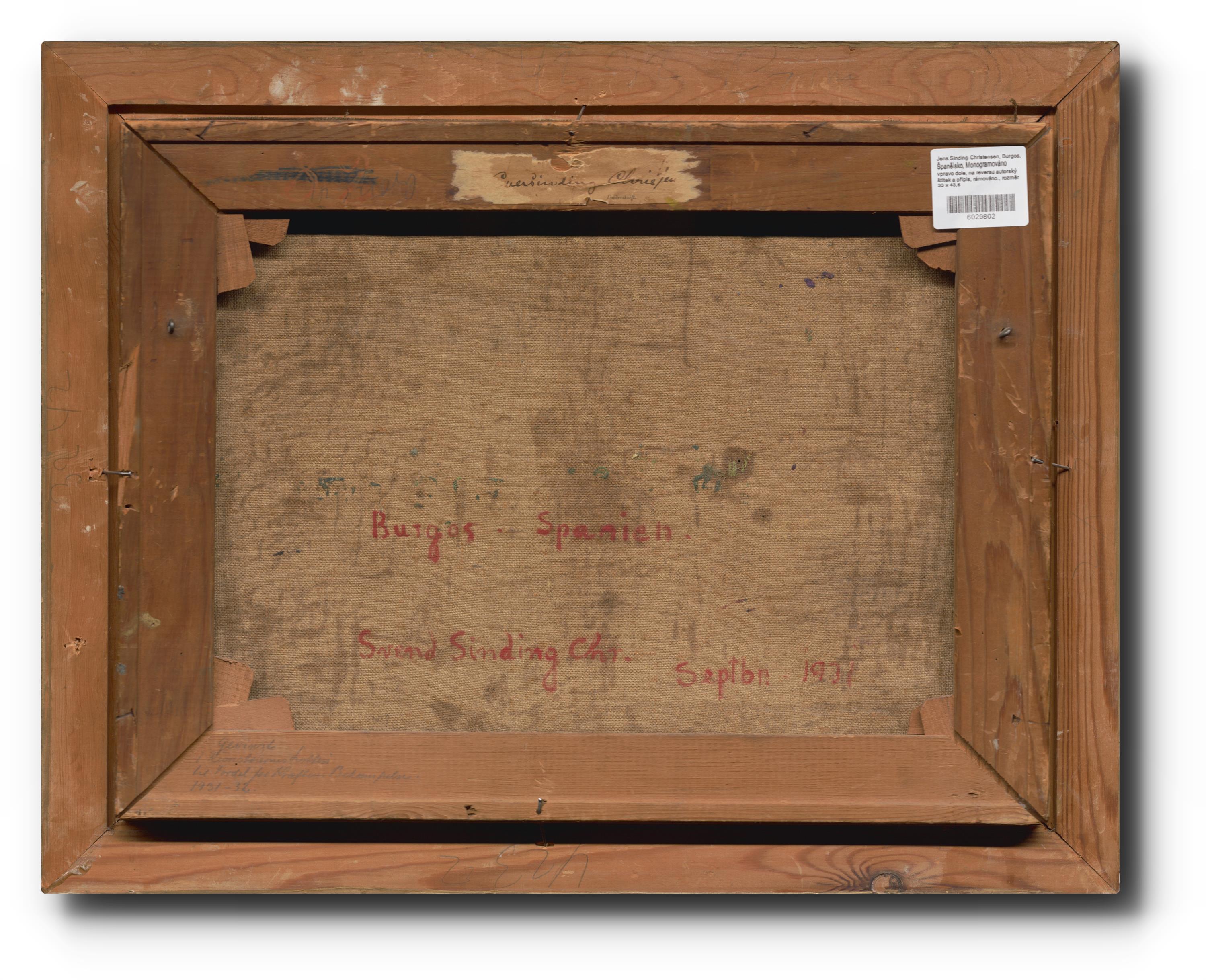 Monogramováno vpravo dole, na reversu autorský štítek a přípis, rámováno.
