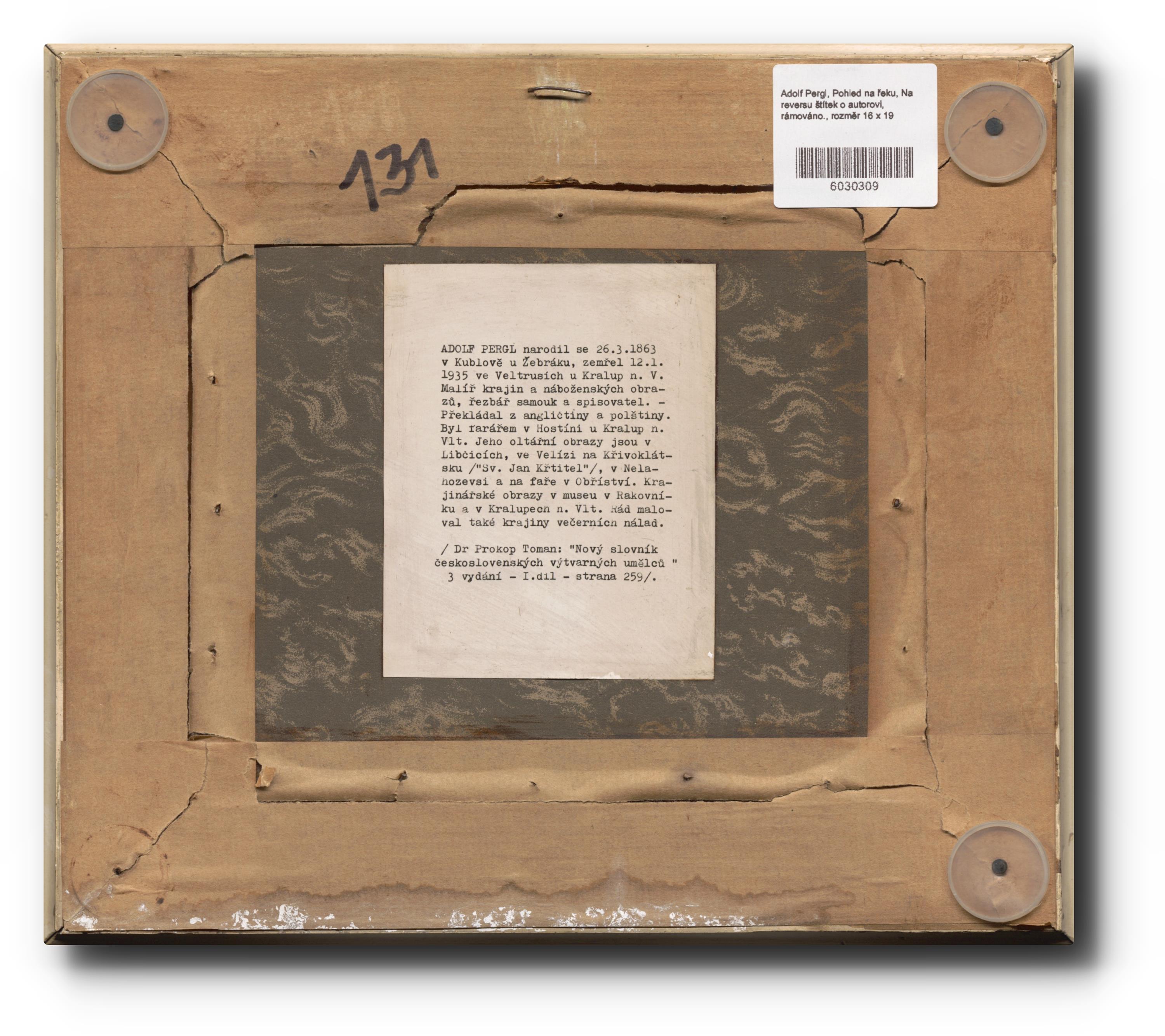 Na reversu štítek o autorovi, rámováno.