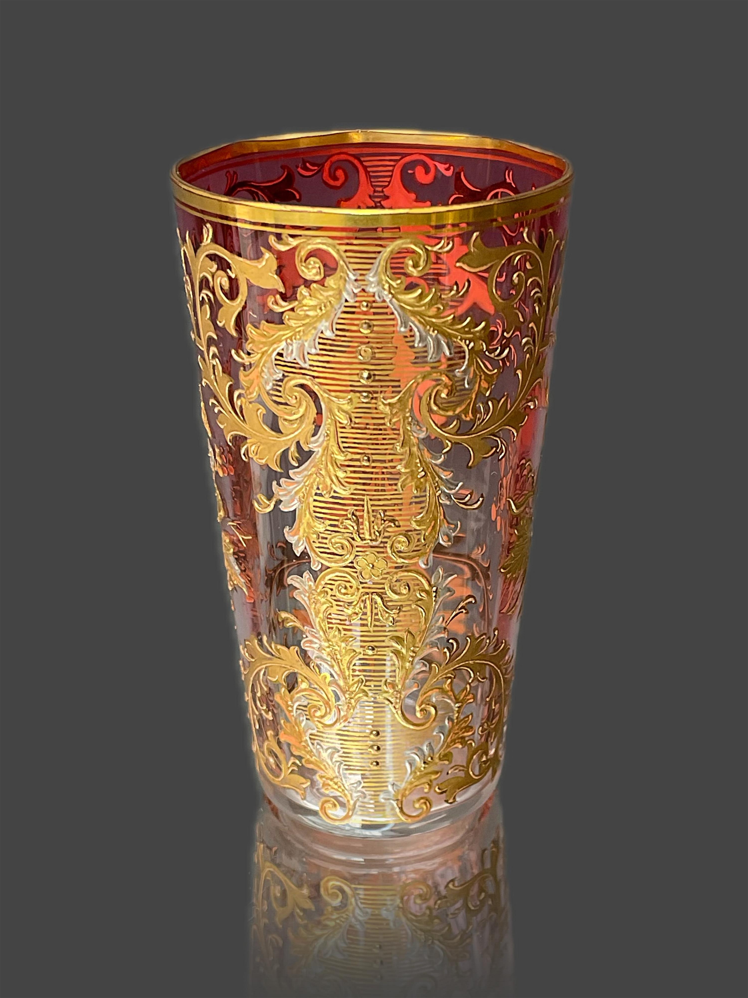 pozlacená sklenička s rostlinným motivem