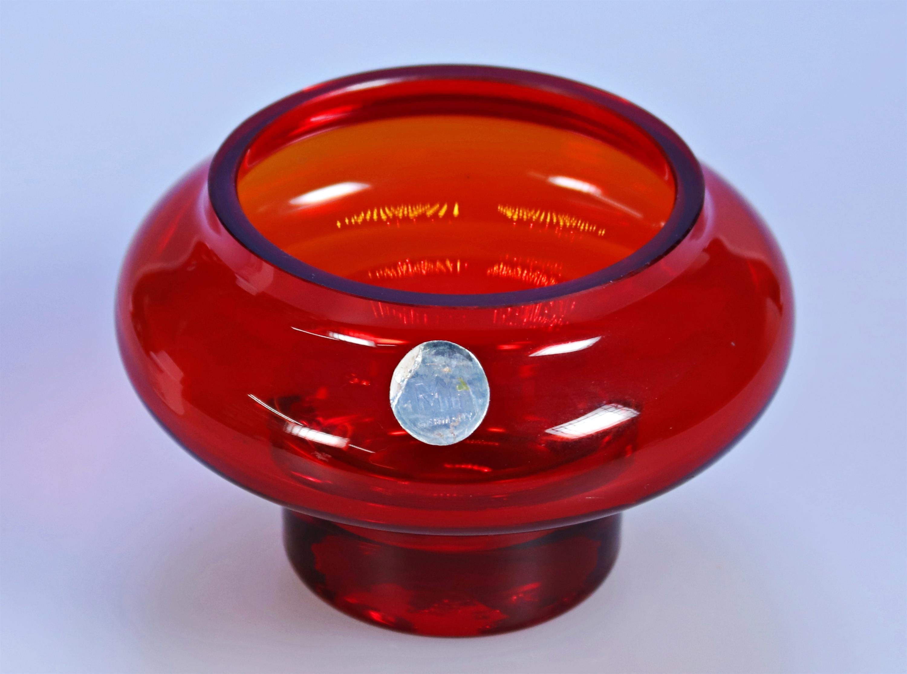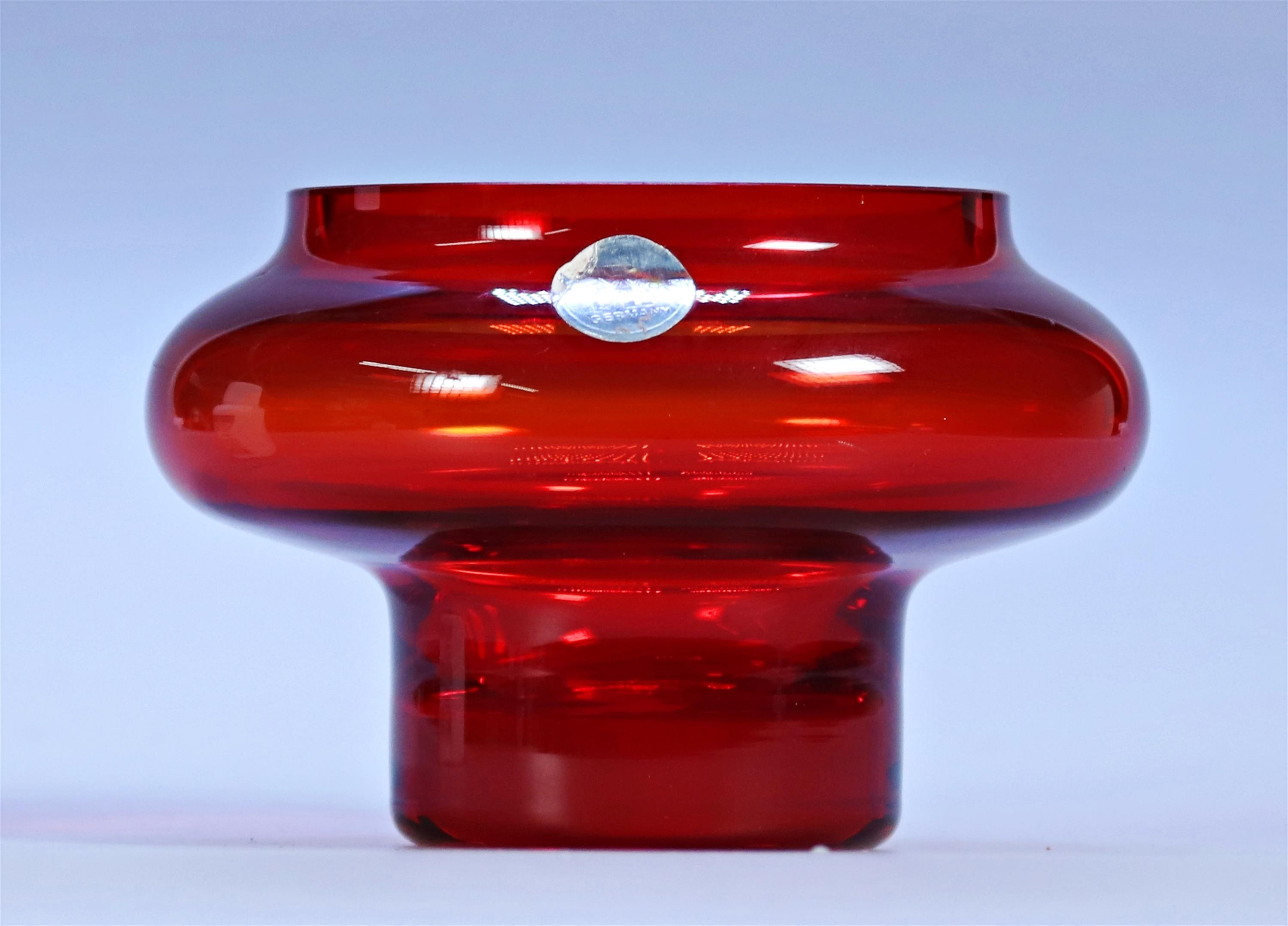 76. Červená nízká vázička s širokým hrdlem