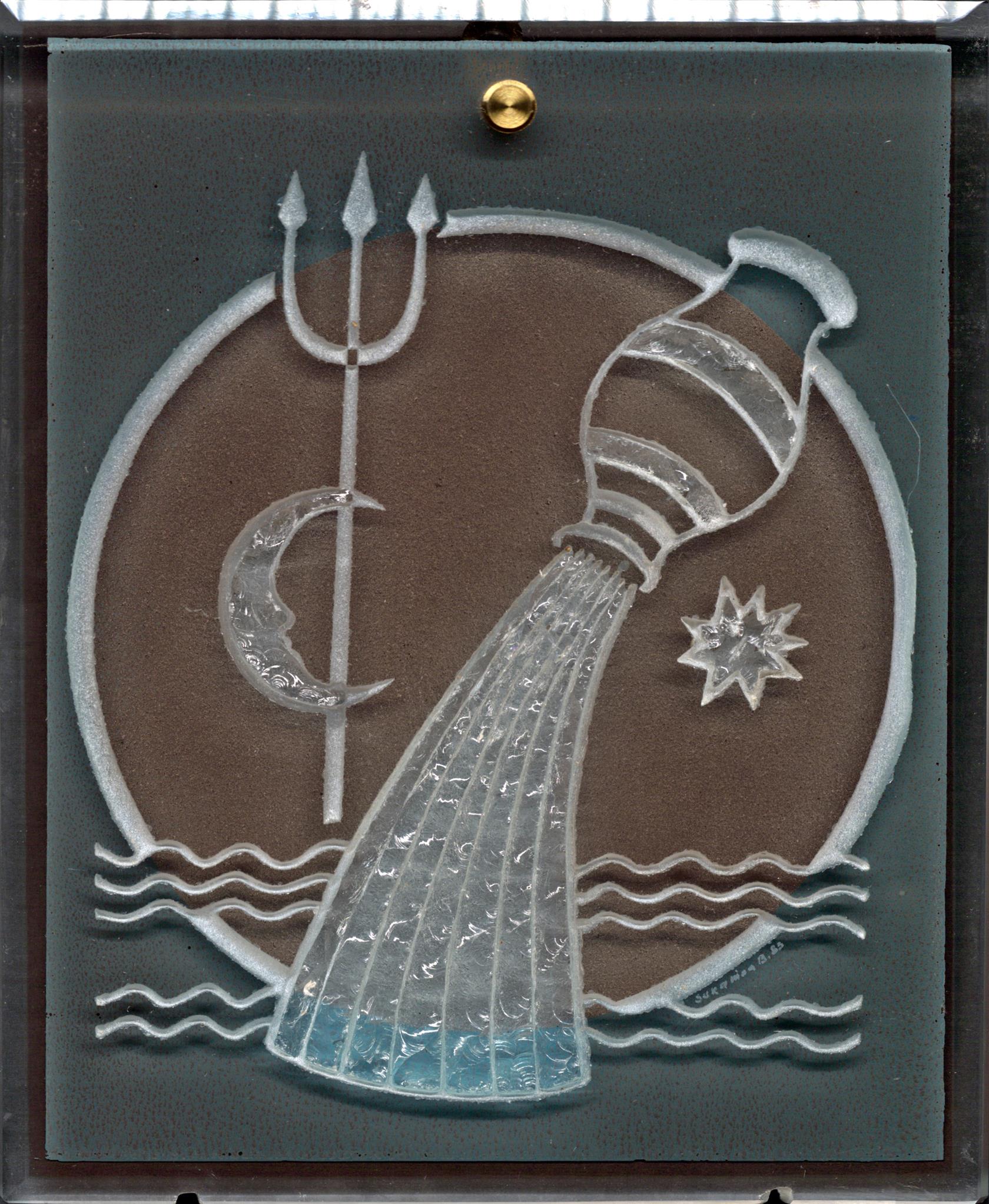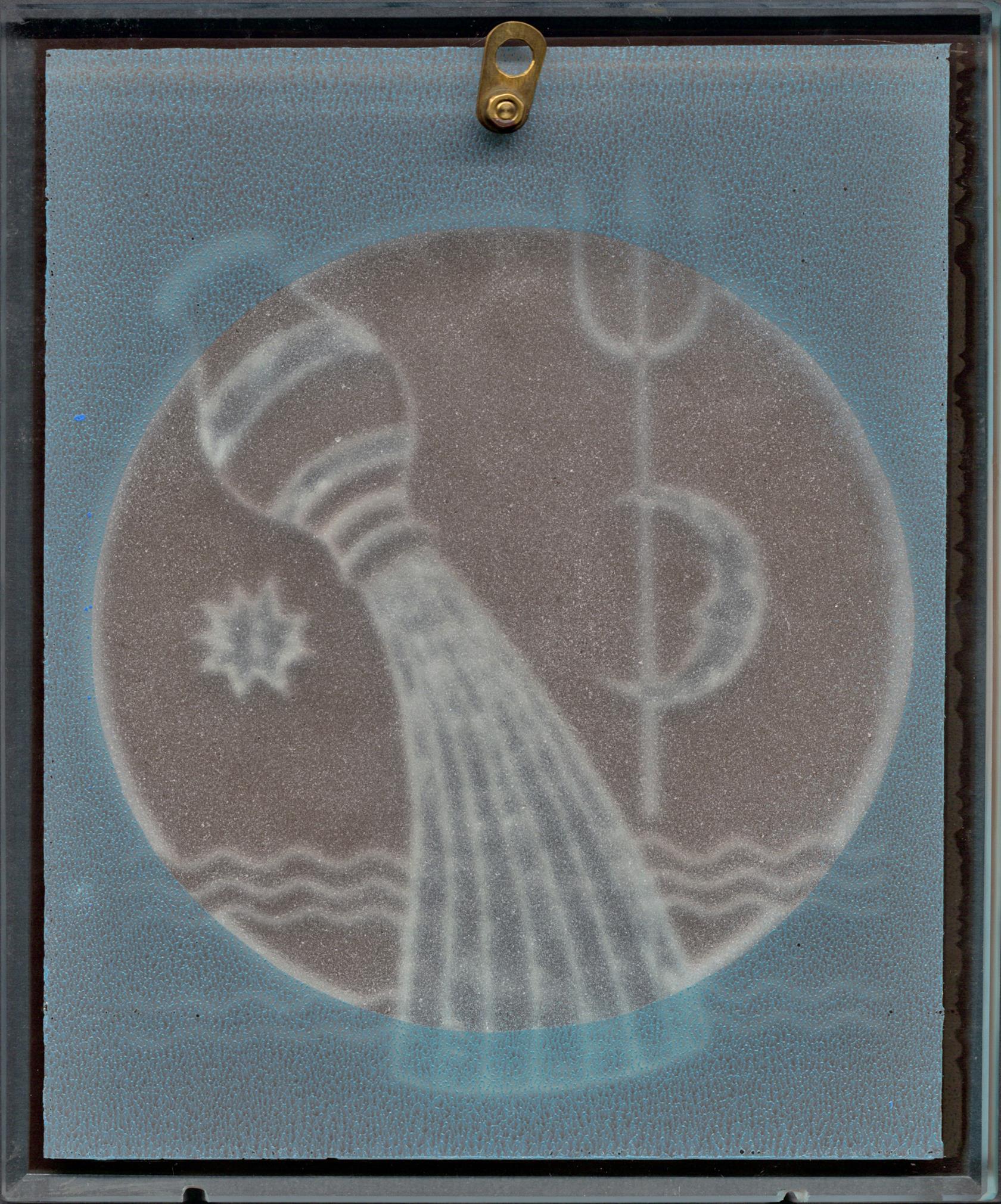 Skleněný závěsný reliéf, datováno a signováno vpravo dole