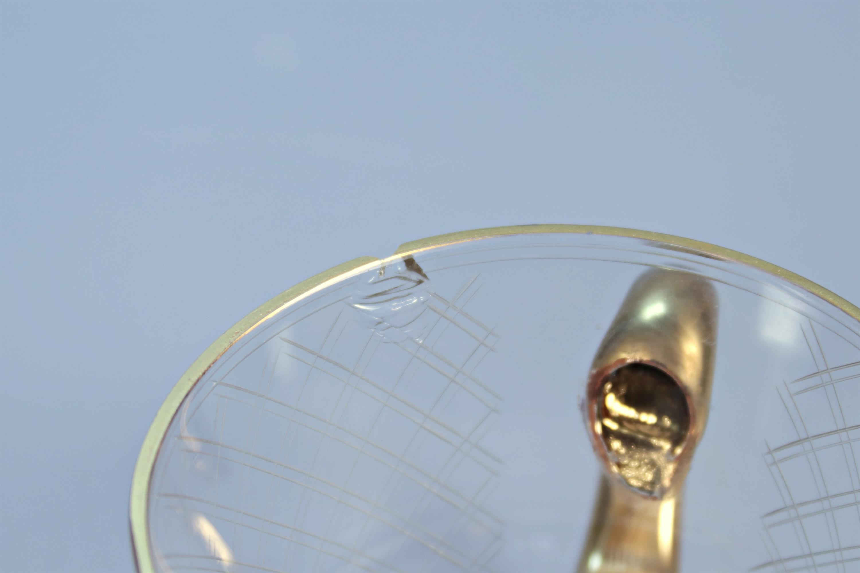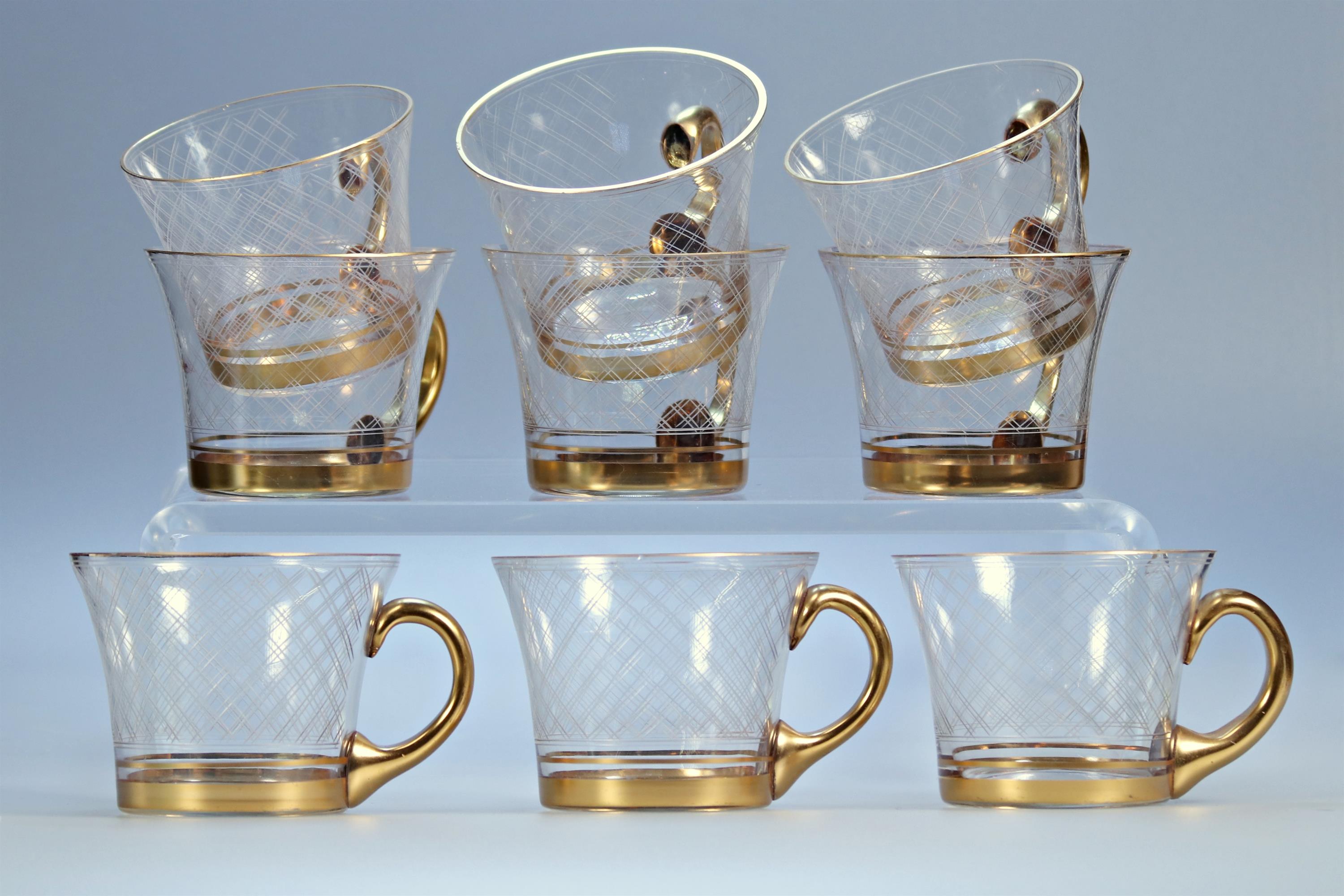 Částečně pozlacené s geometrickým dekorem. Stojan není součástí prodeje