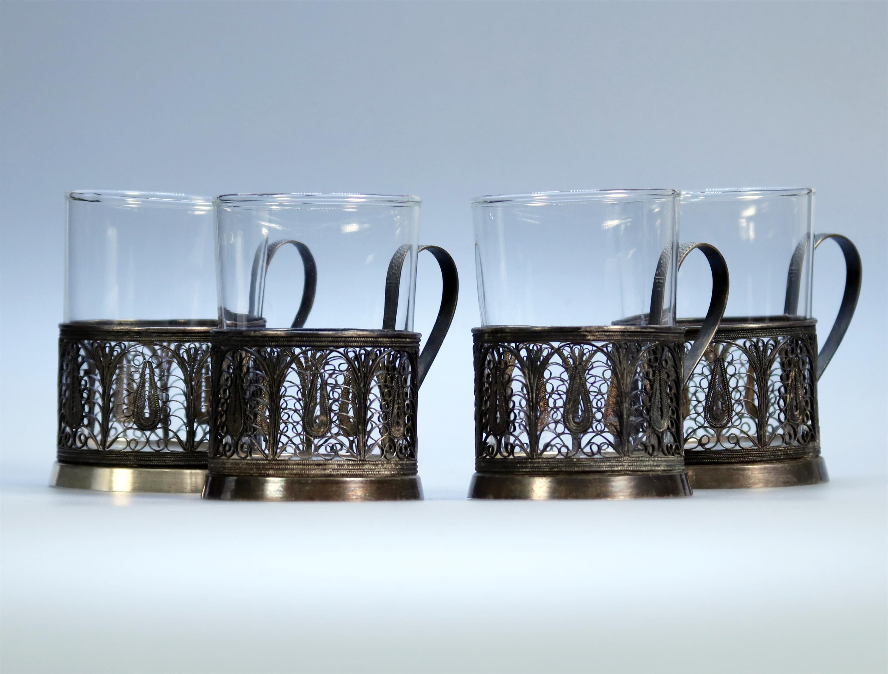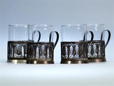 221. Sada sklenic s ozdobným kovovým základem