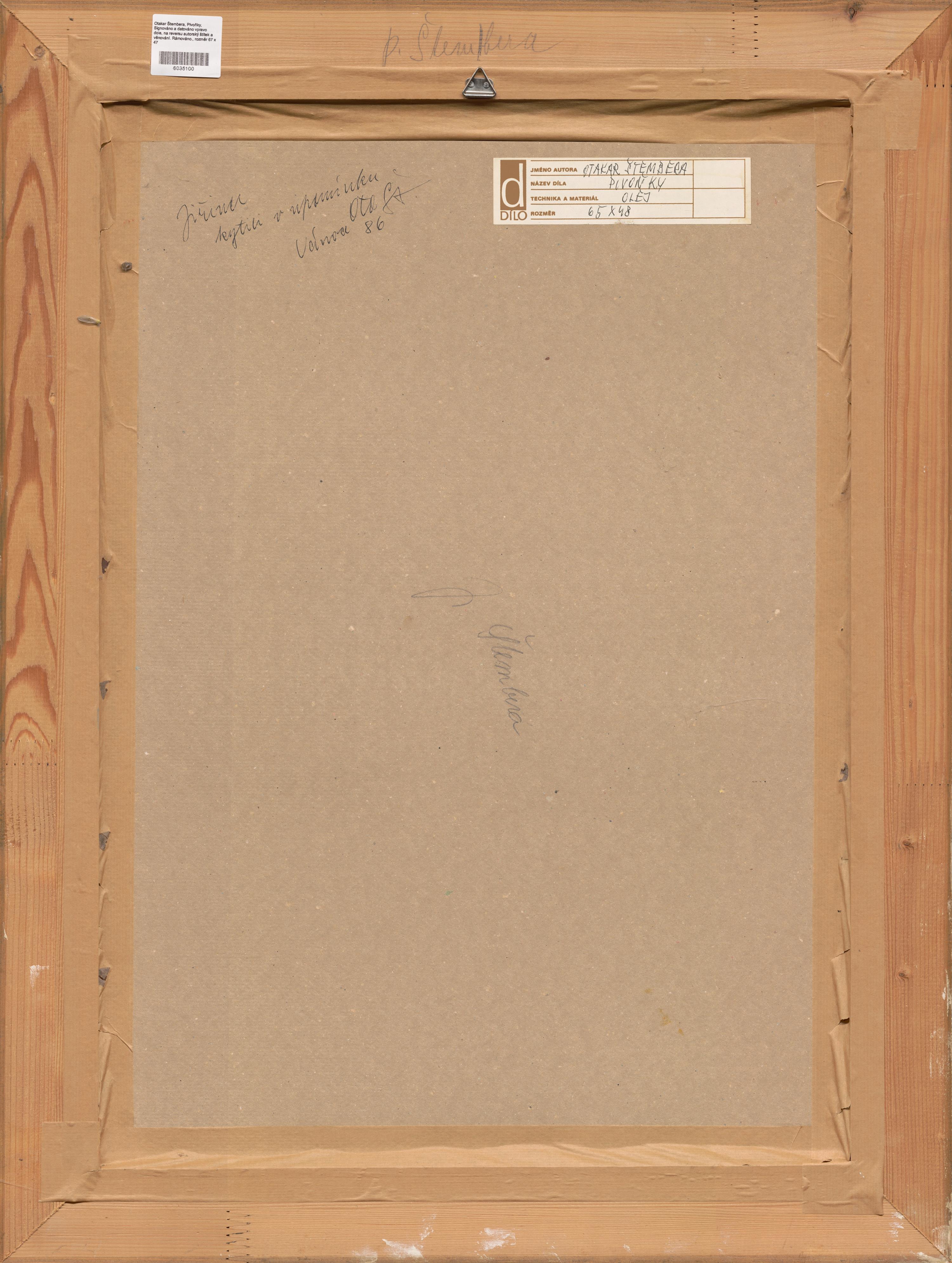 Signováno a datováno vpravo dole, na reversu autorský štítek a věnování. Rámováno.