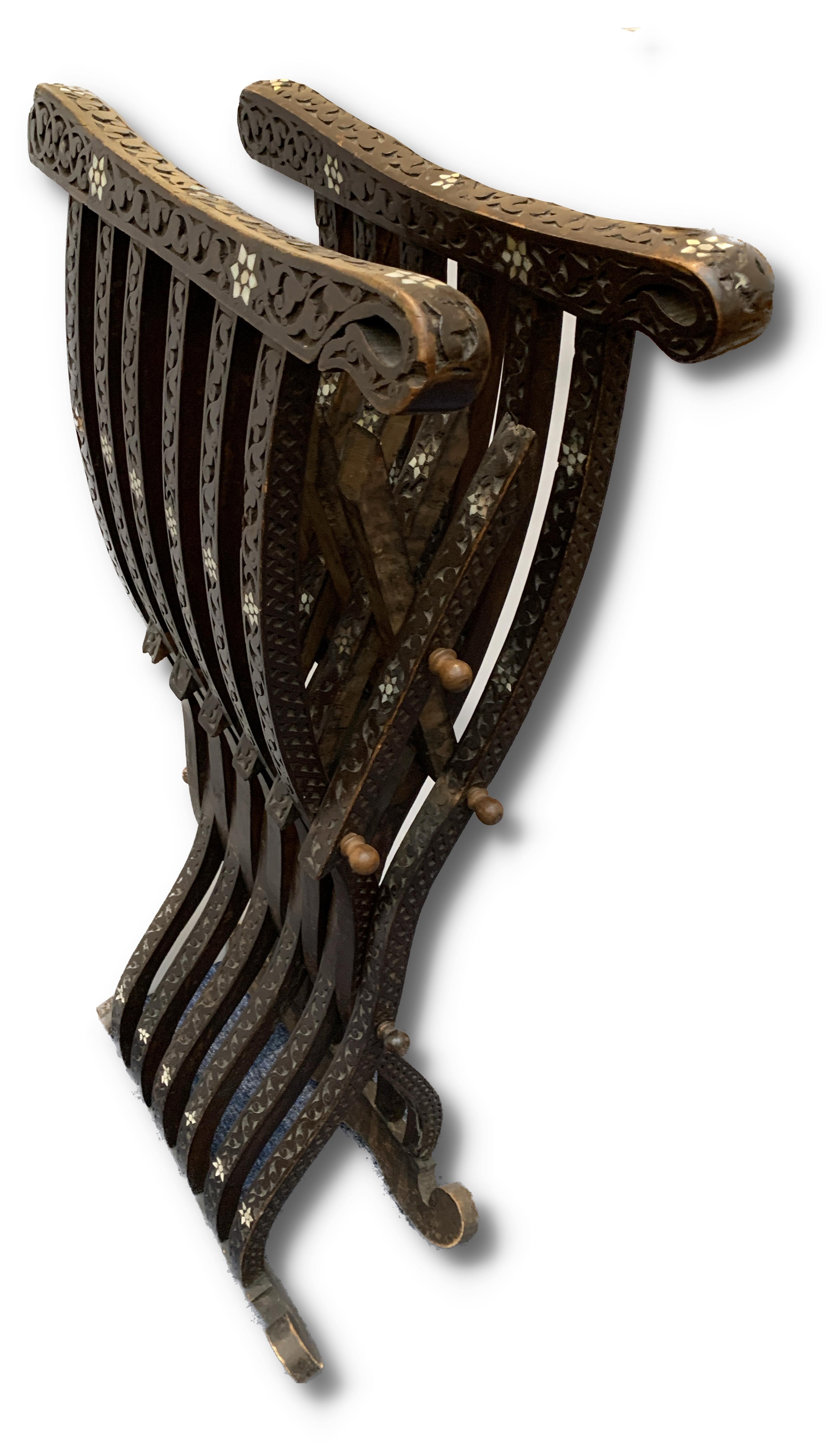 2 kusy křesílek inkrustovaných perletí, částečně vypadaná perleť