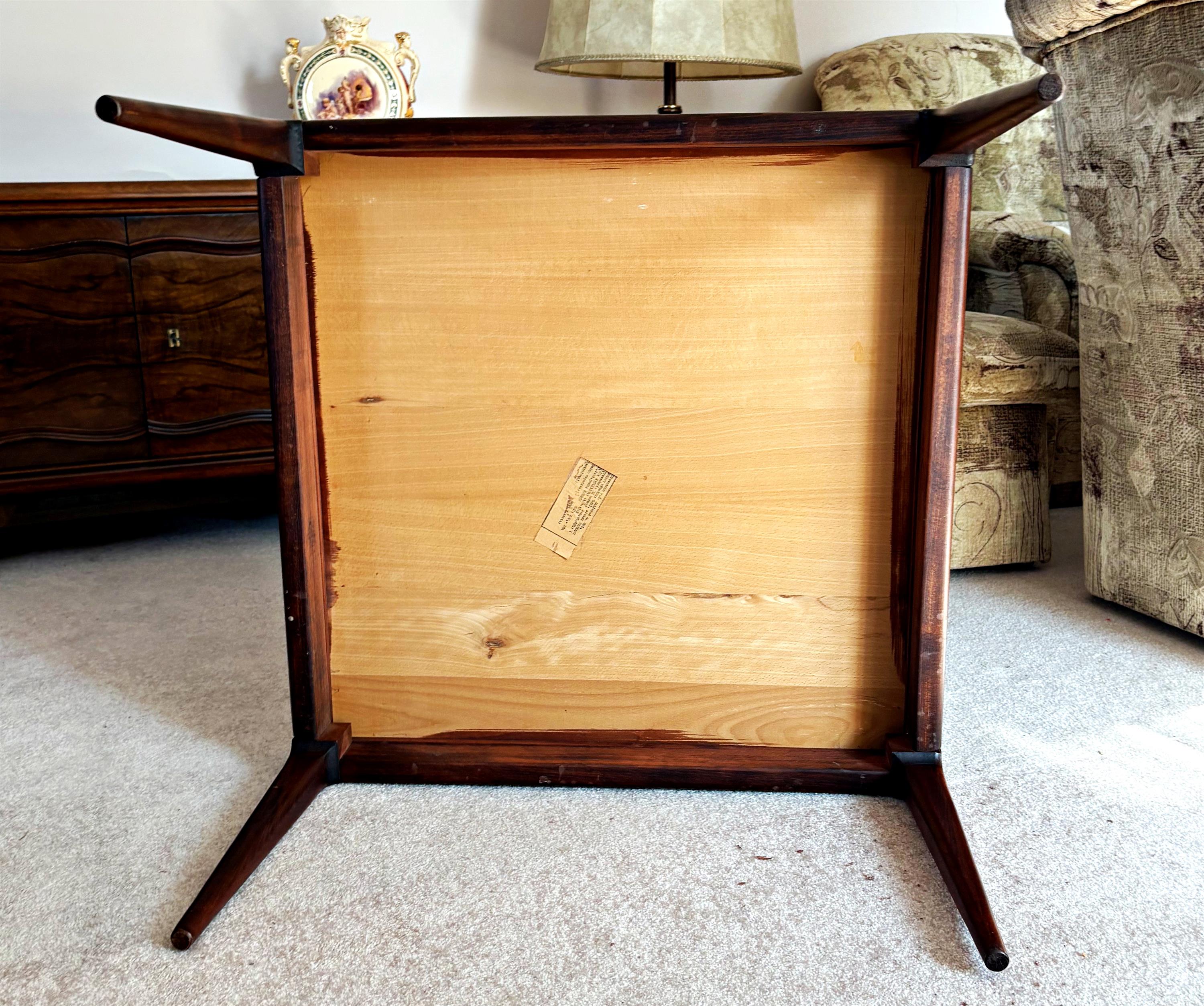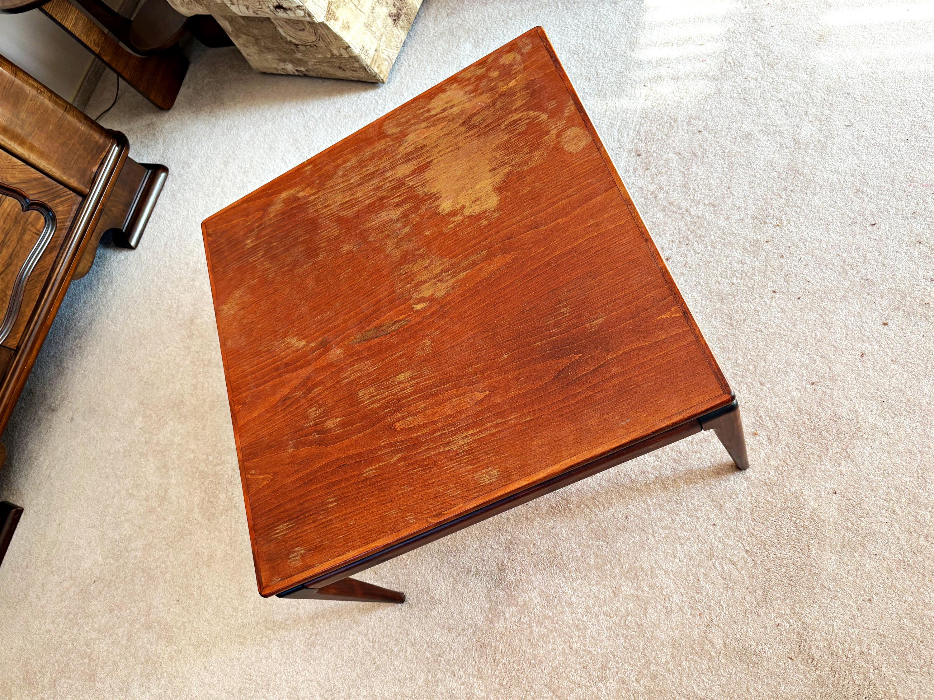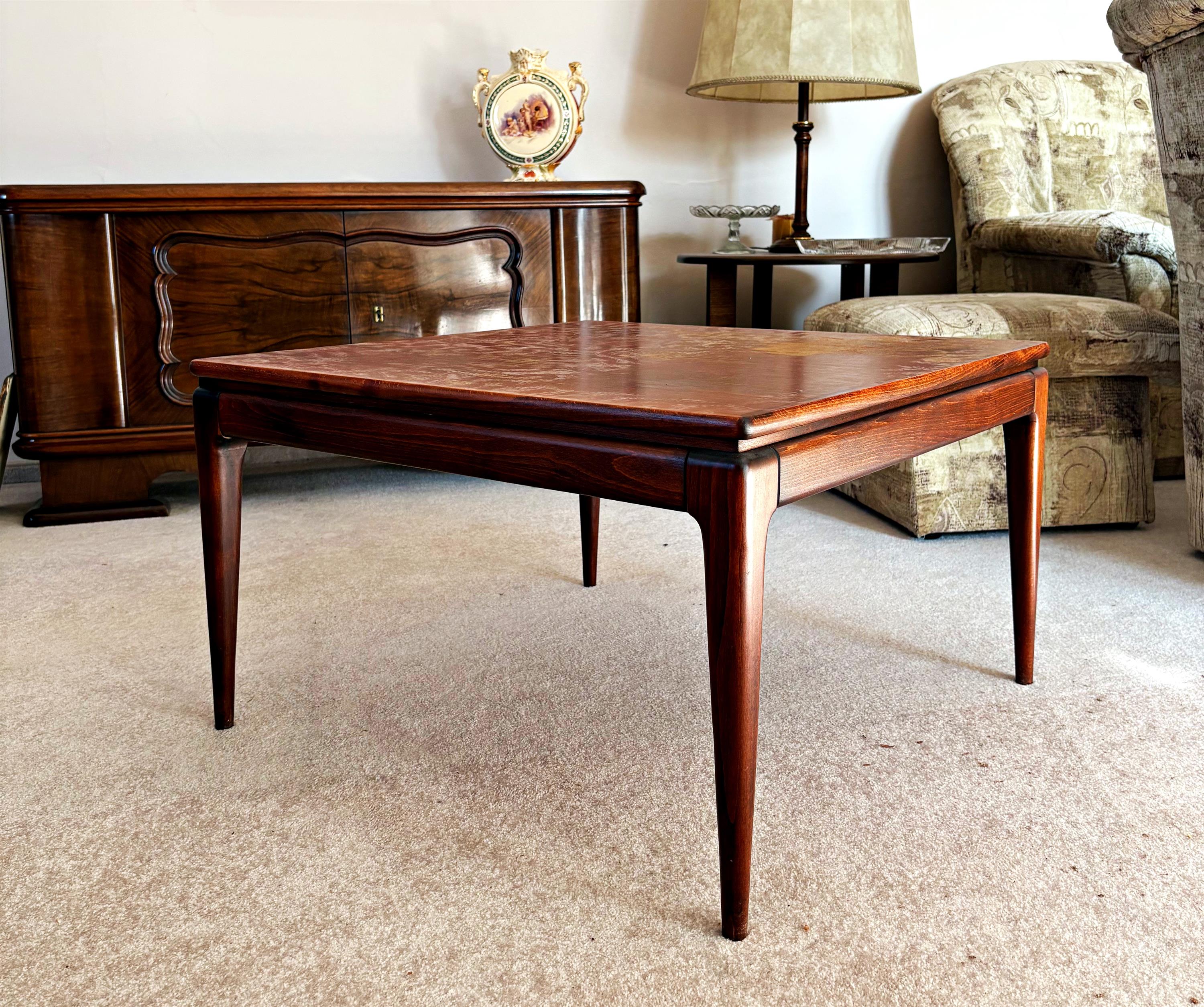 čtvercový konferenční stůl z masivu, zespodu původní štítek výrobce Dřevotvar