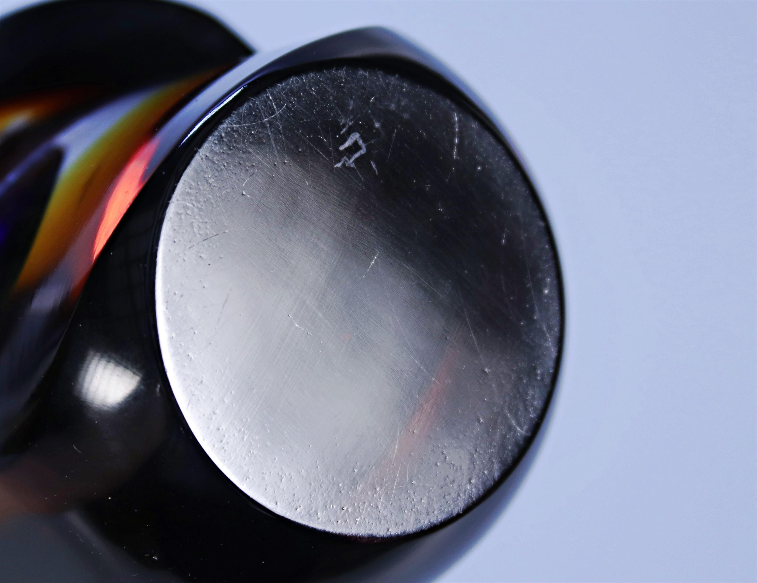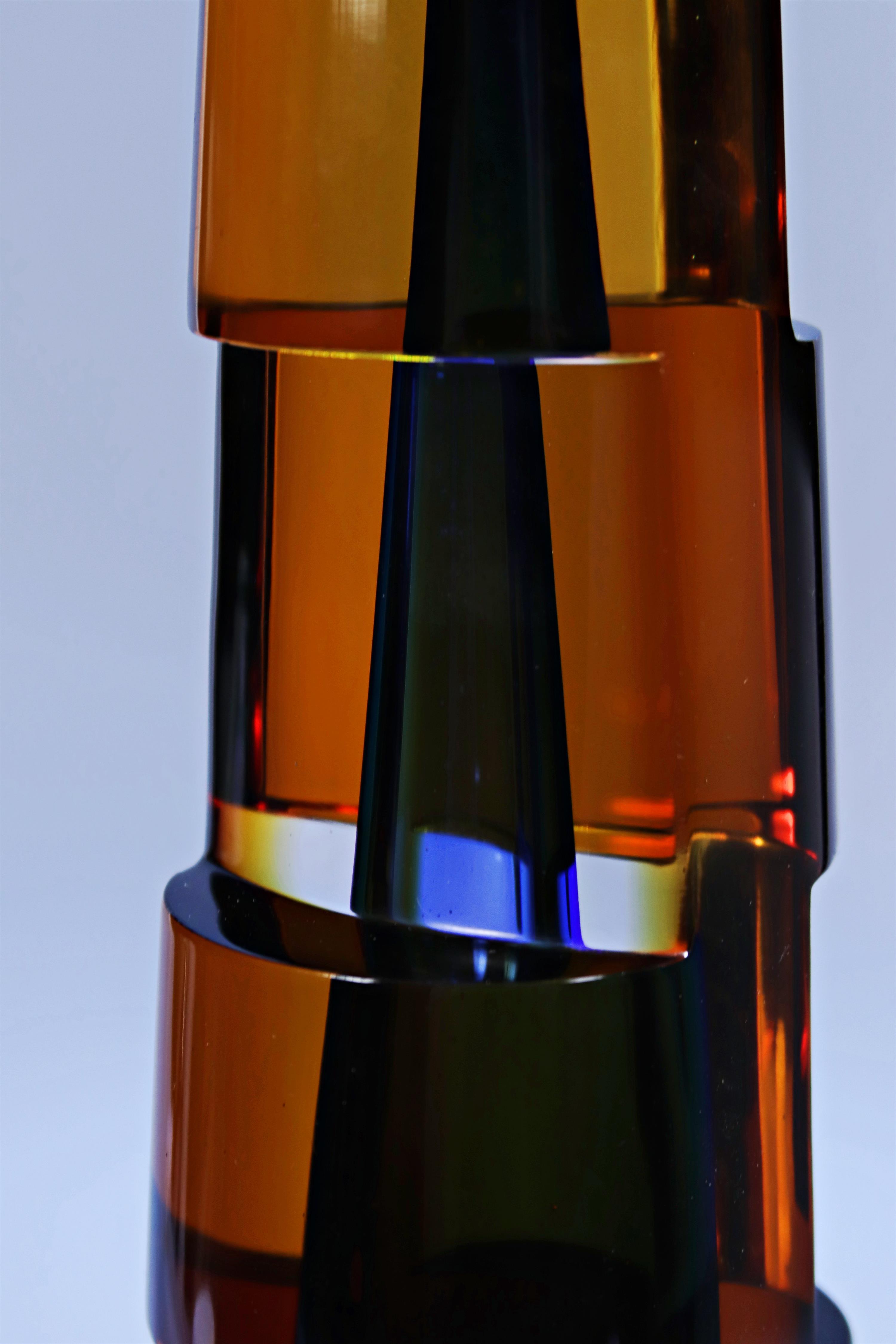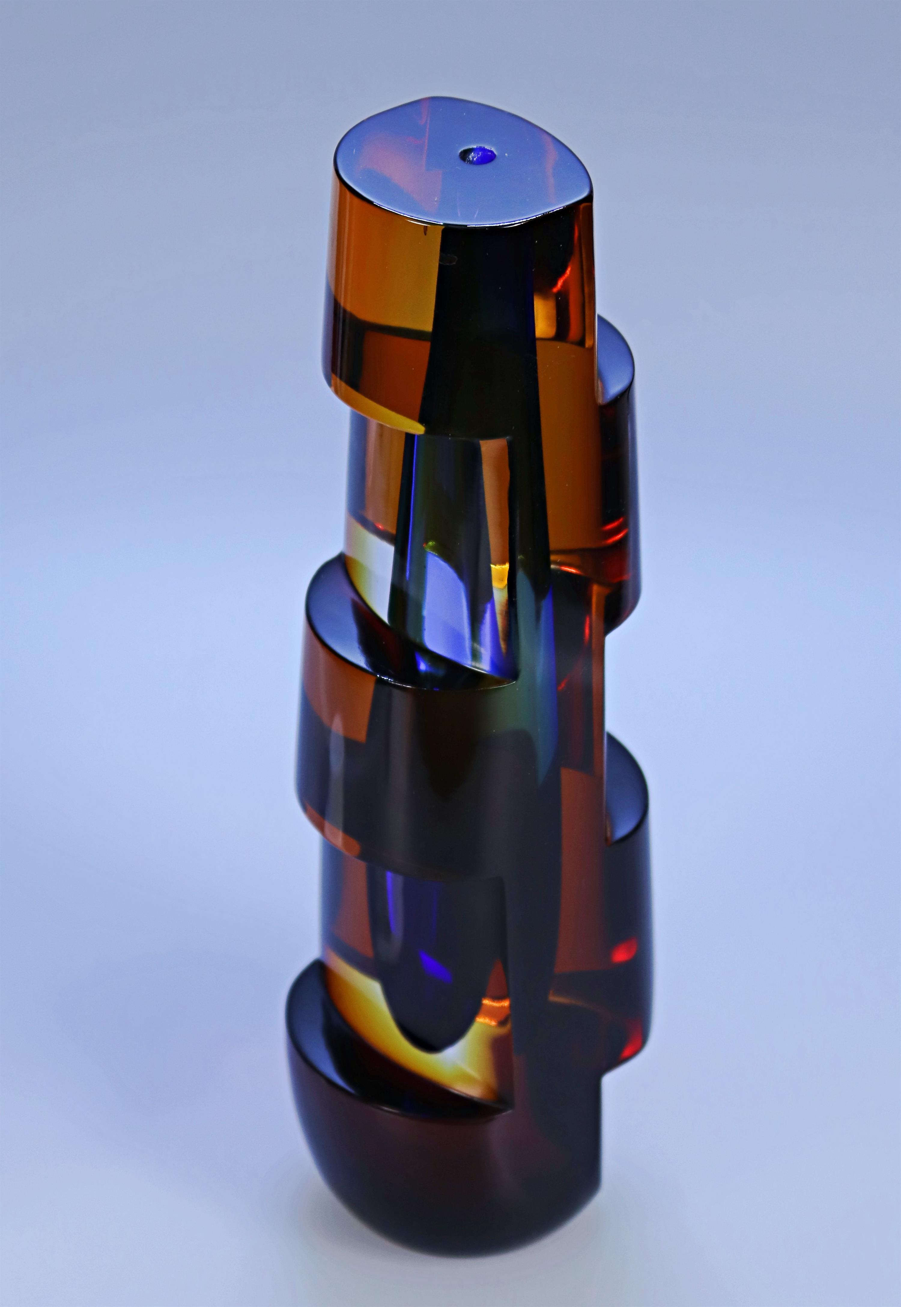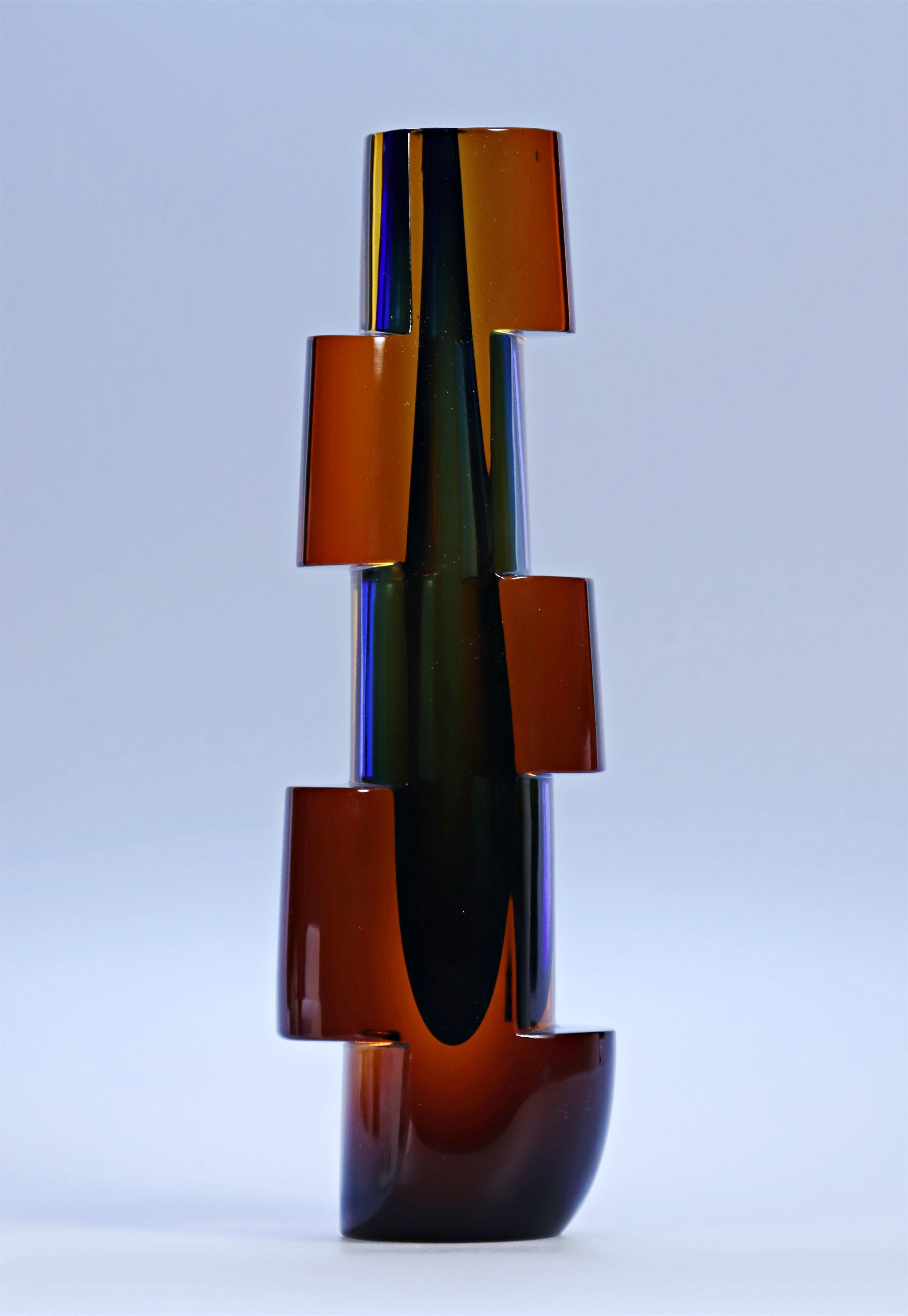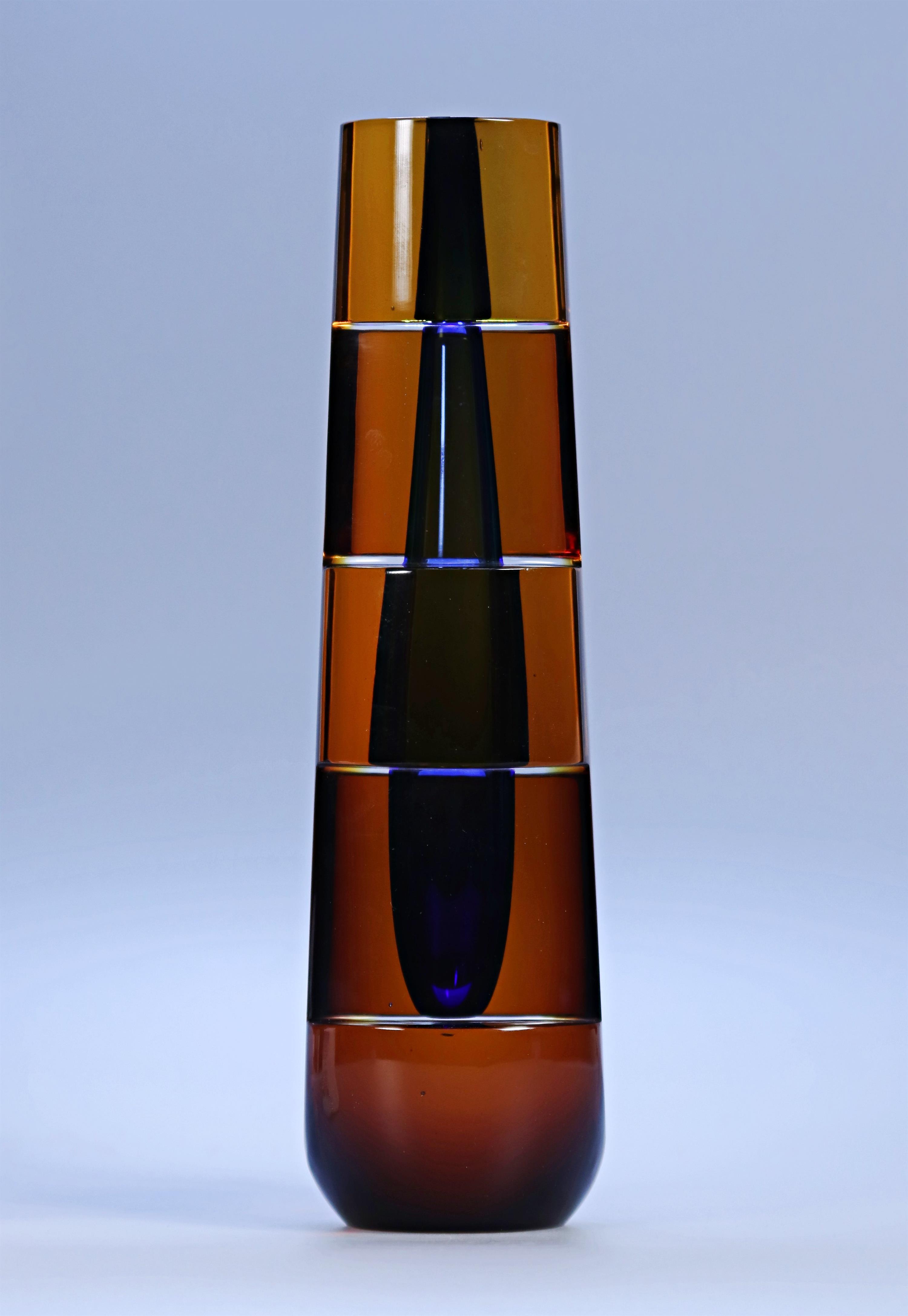 Materiál: sklo sommerso s kobaltovým jádrem, hutně tvarované, broušené