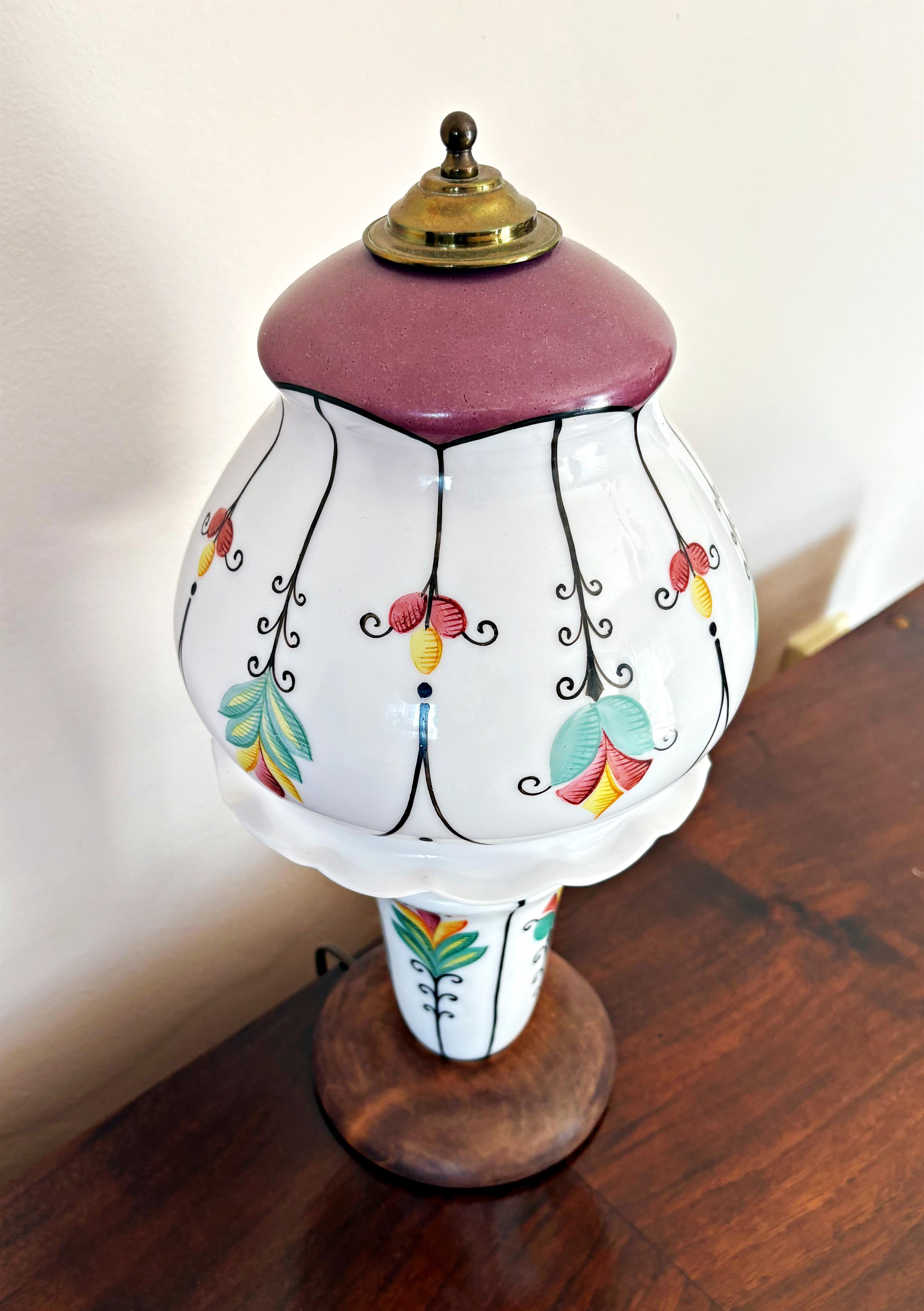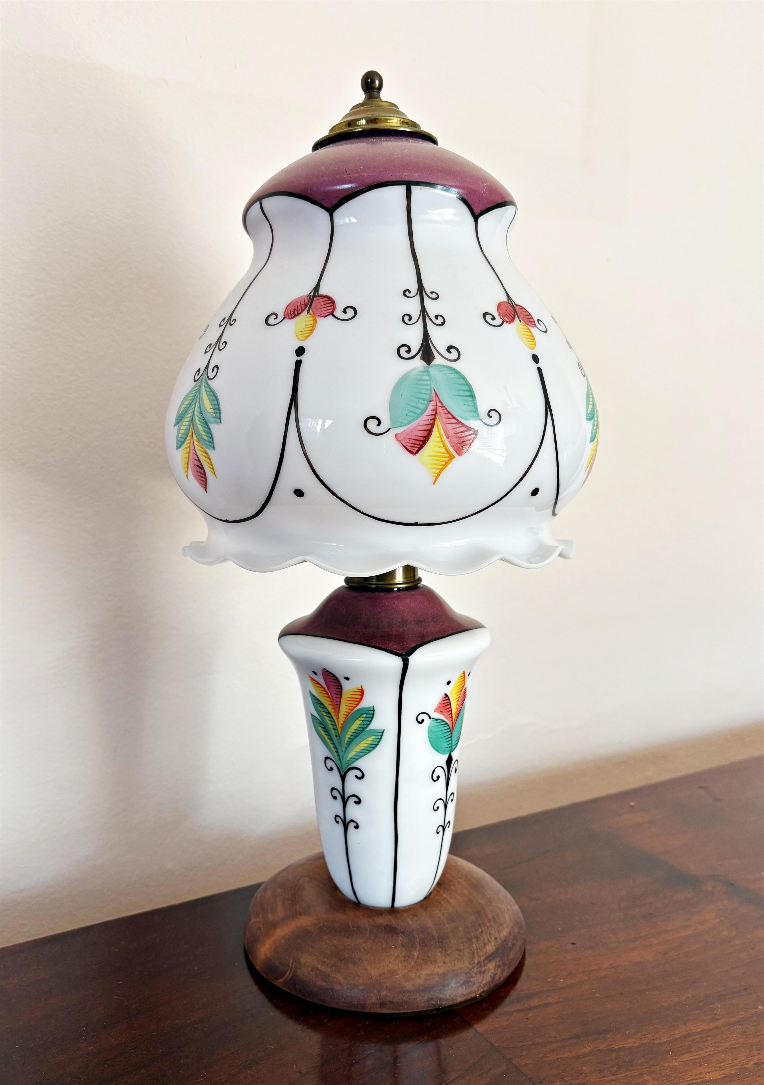 Celoskleněná ručně malovaná lampa na dřevěné základně