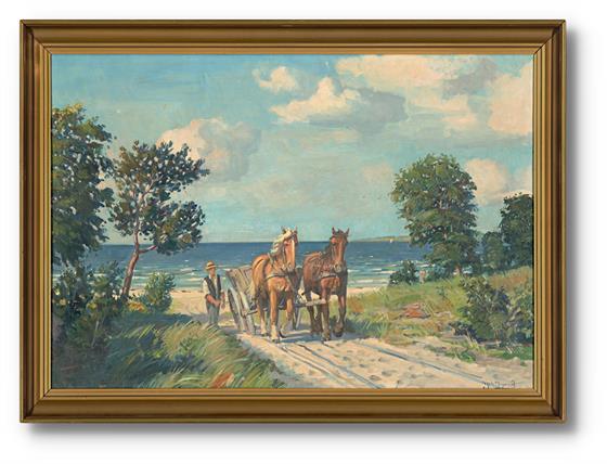 48. Koně táhnoucí vůz z pláže