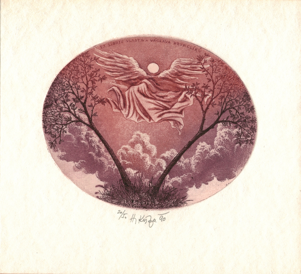 volný grafický list, ex libris Vlasta a Václava Brunclíků, signováno UD, číslováno 25/50