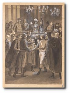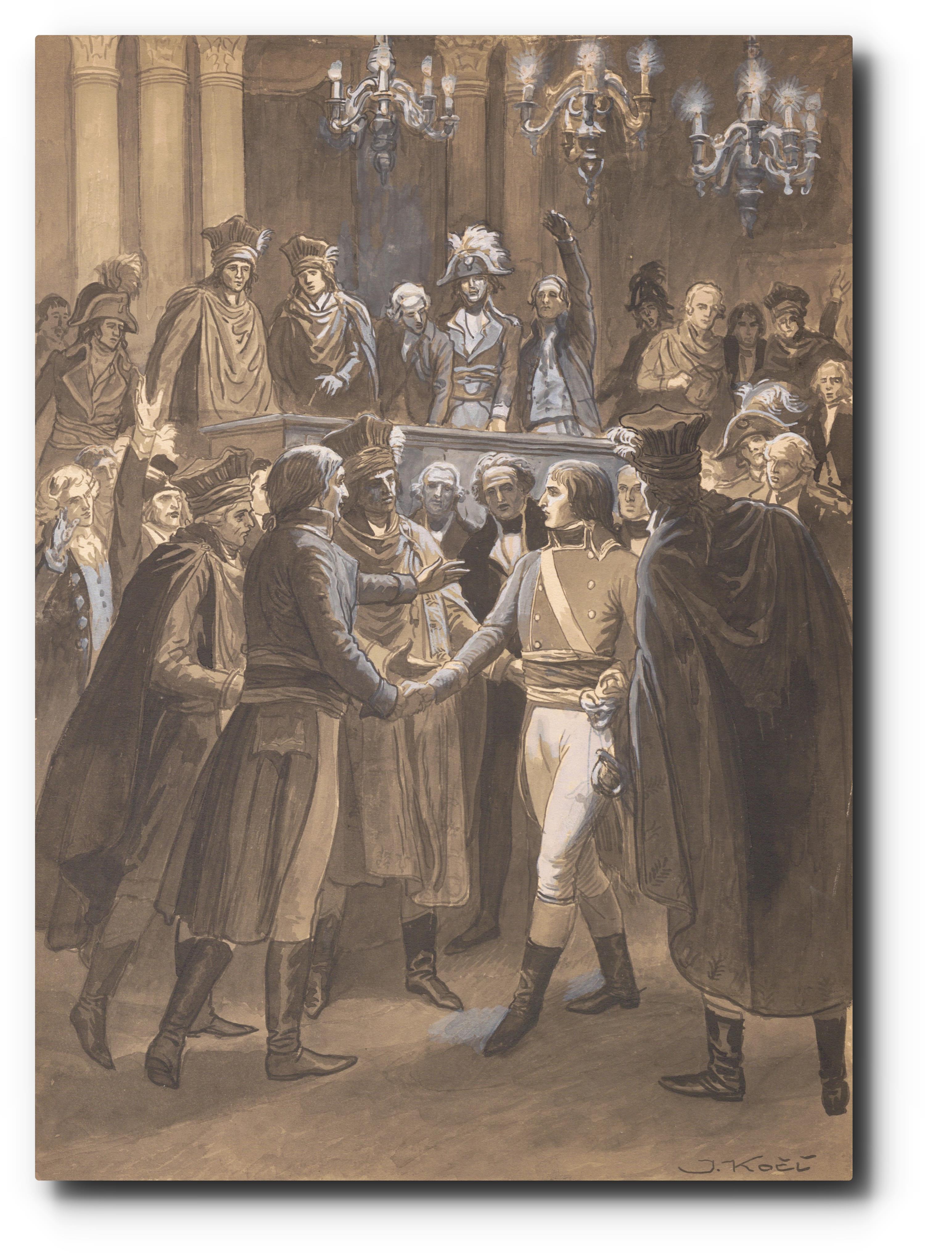 Signováno vpravo dole. Původní návrh ilustrace pro sešit Děti revoluce (Temno a zář).