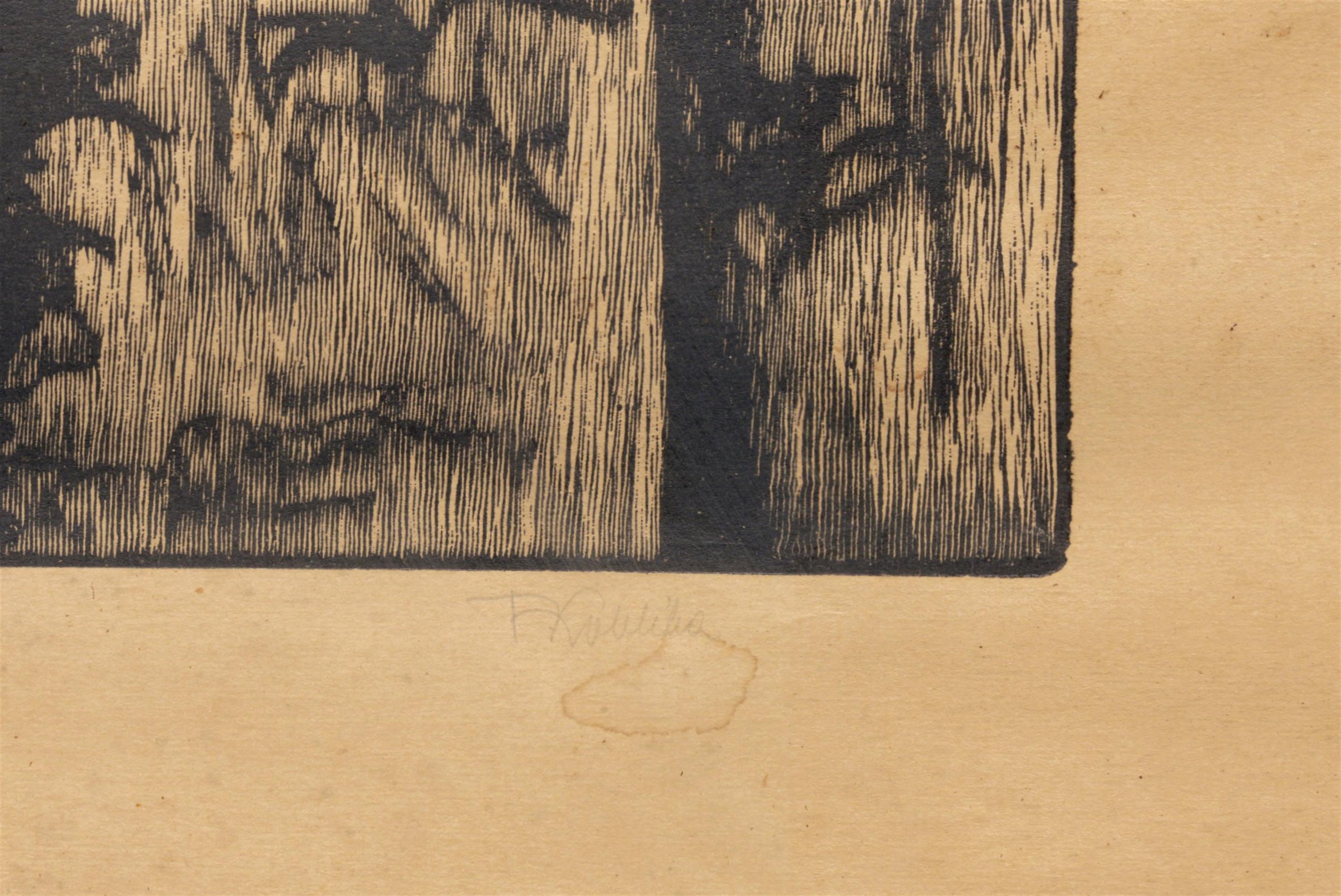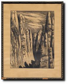 Signováno tužkou vpravo dole, zaskleno a rámováno.