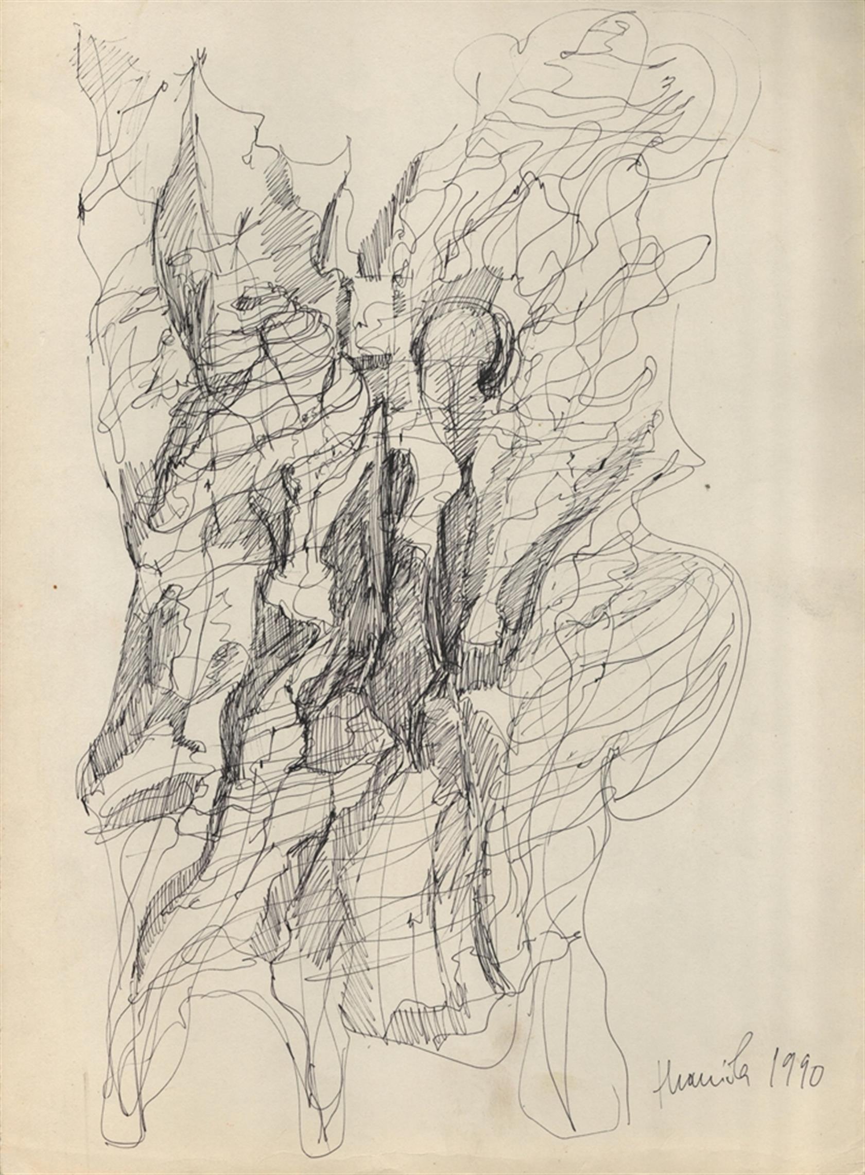 Technika: kresba na kartonu, datace: 1990