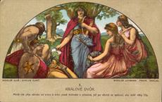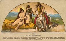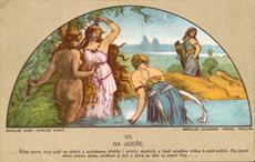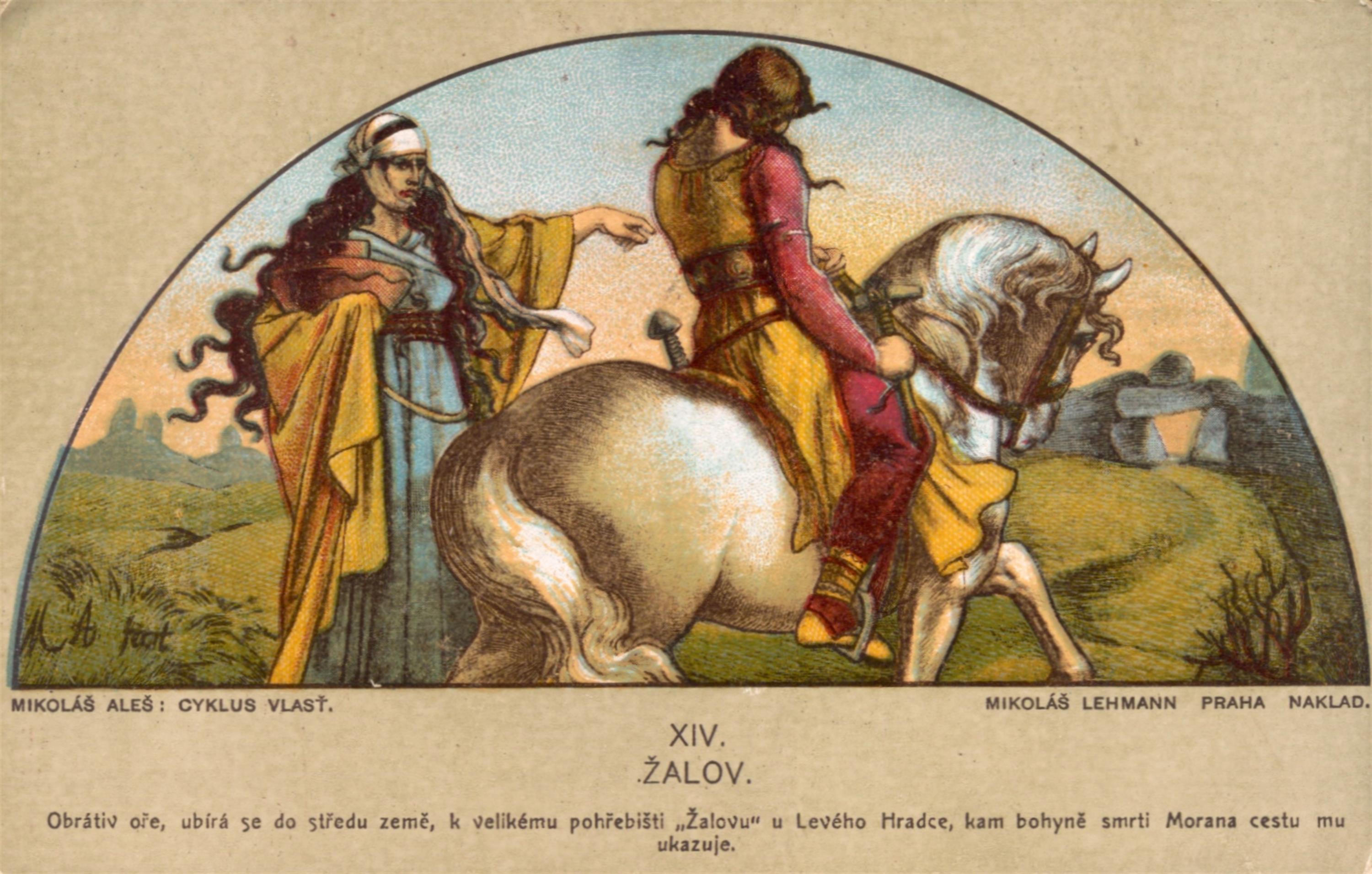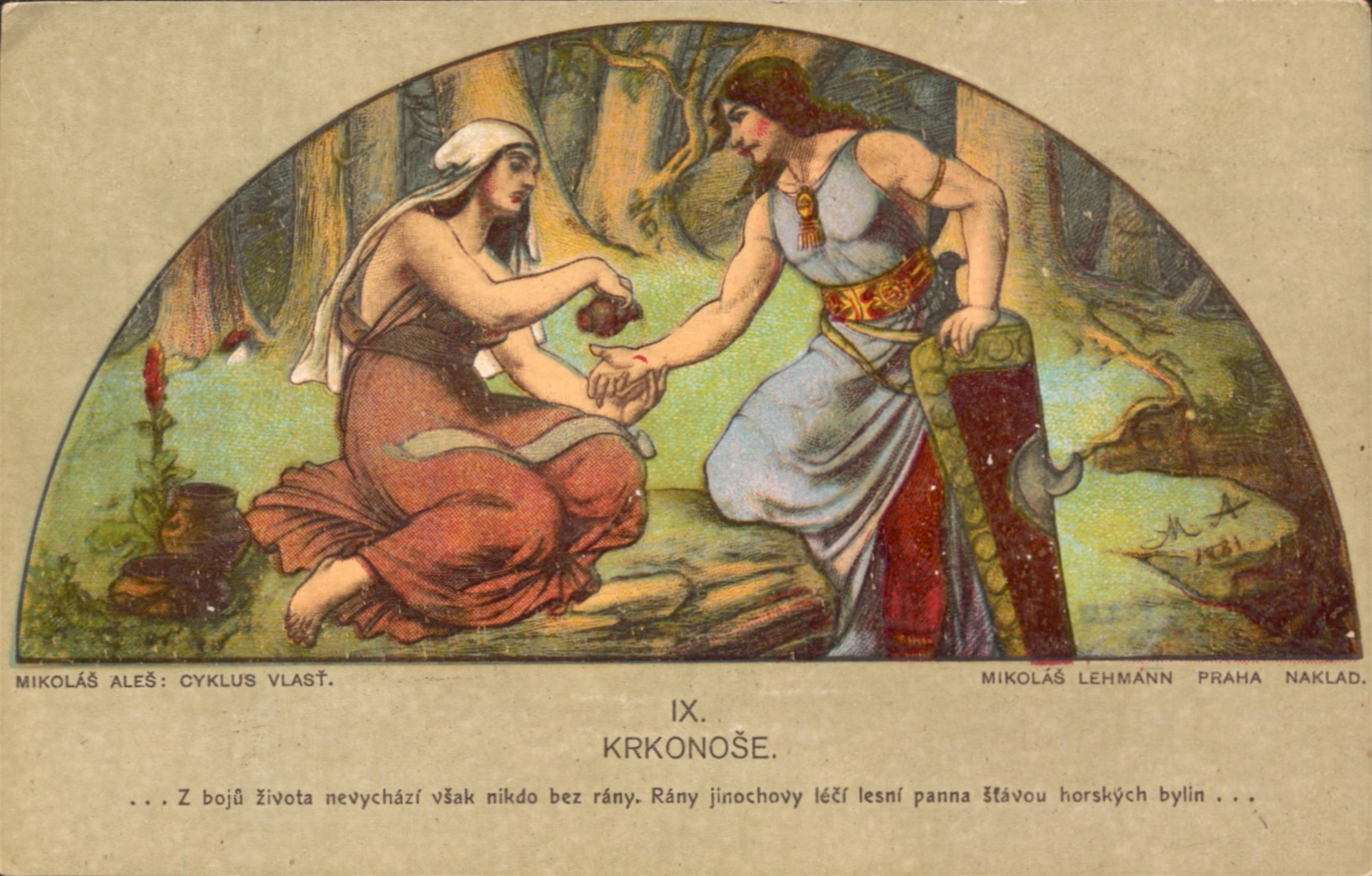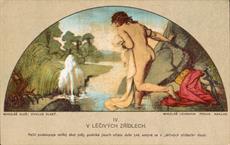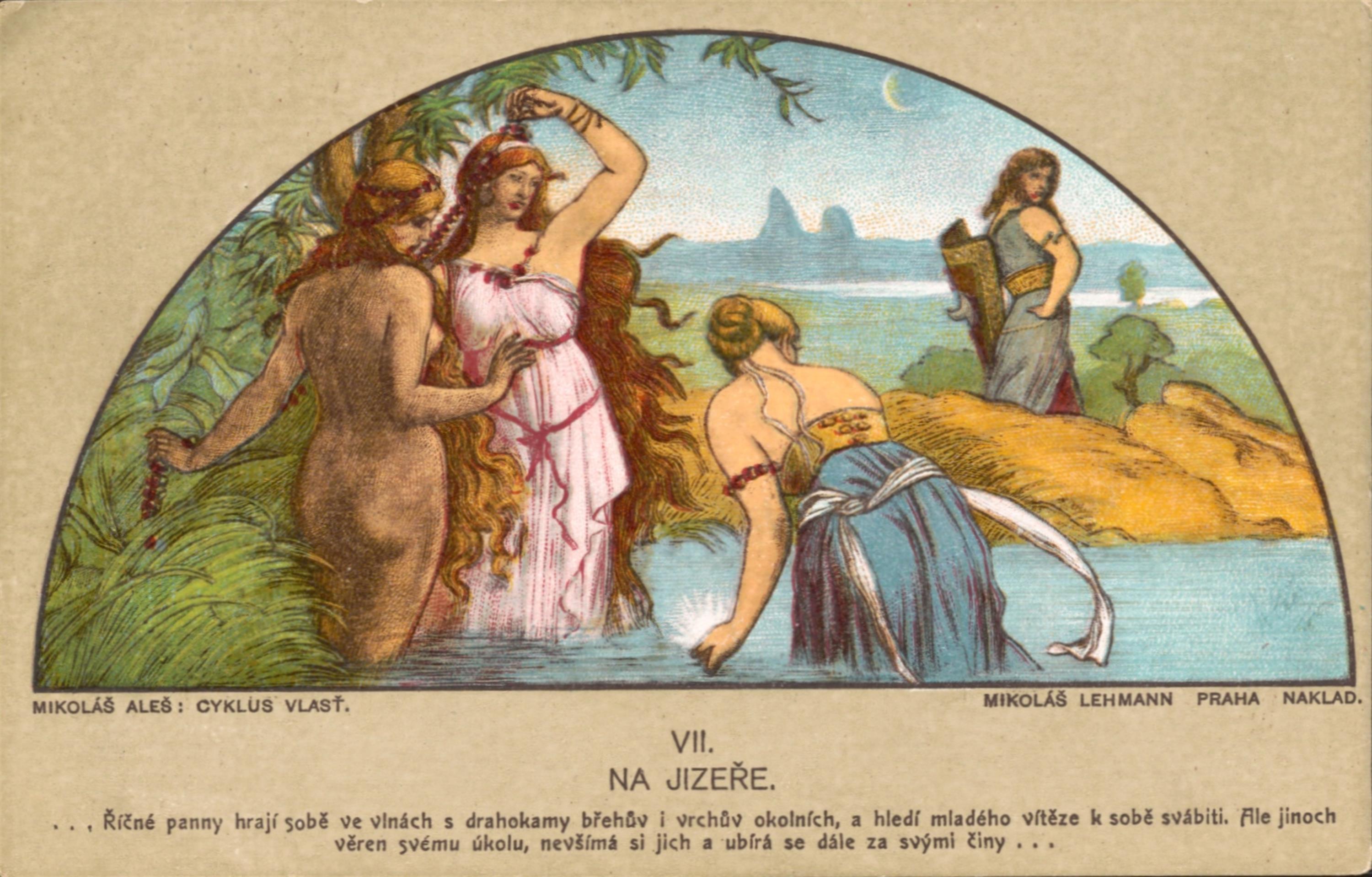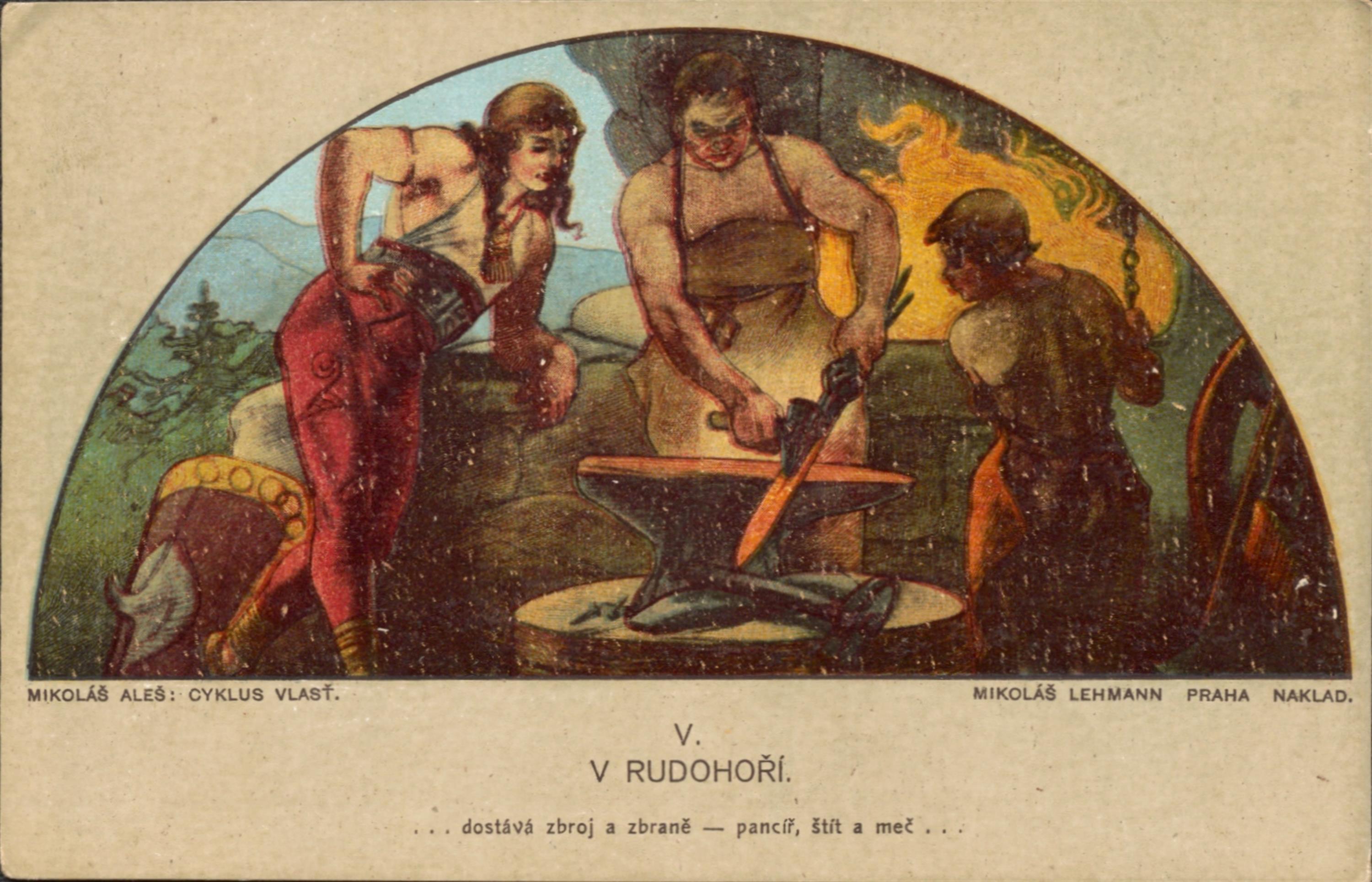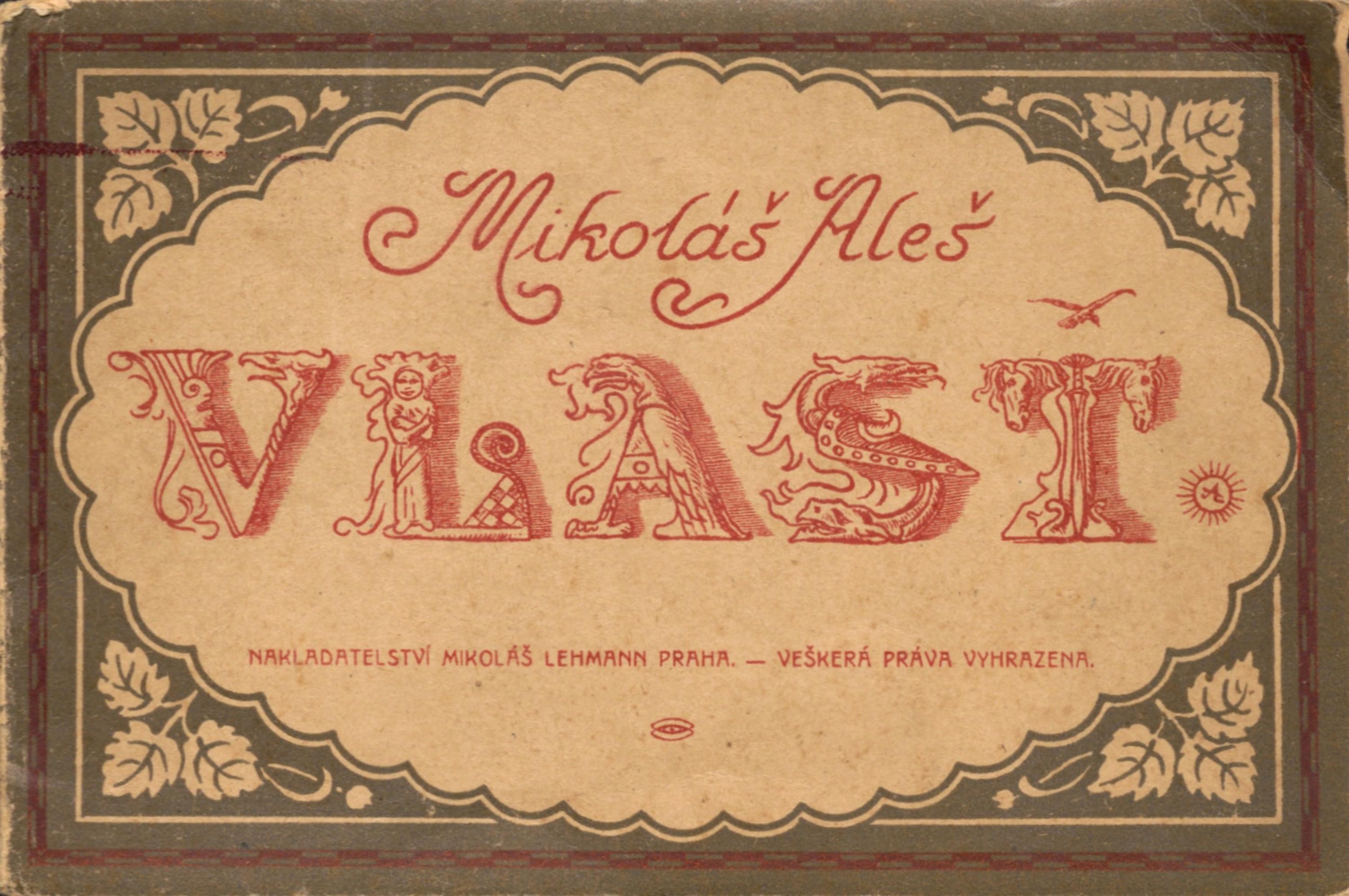 soubor barvných pohlednic s motivy z Cyklusu Vlast od Mikoláše Aleše, vydáno Mikolášem Lehmannem v Praze, celkem 14 kusů v původních deskách