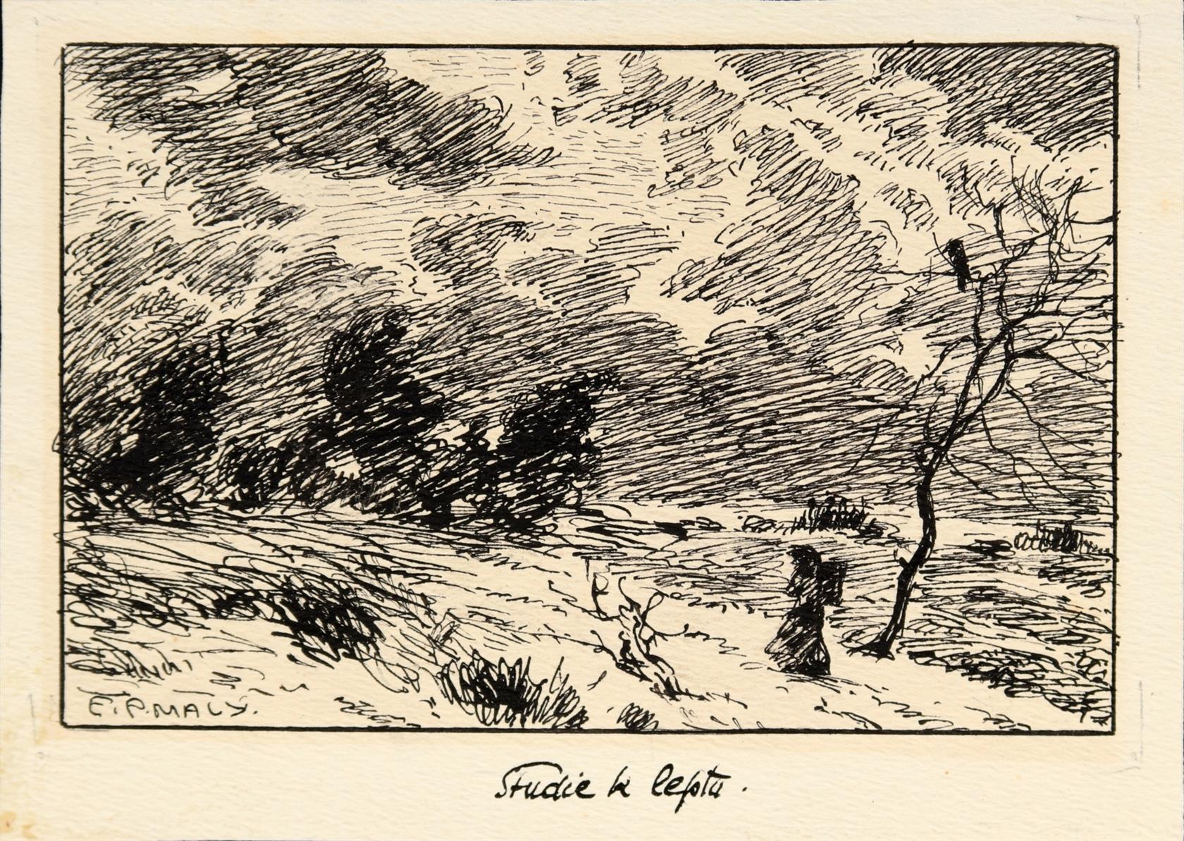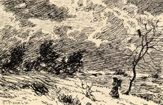 3. Studie k leptu, tuš, 15,5 x 11 cm