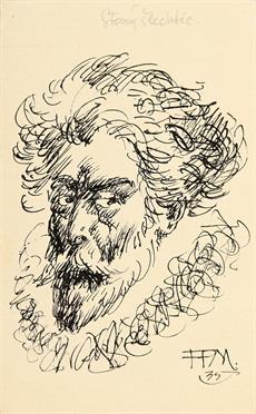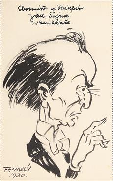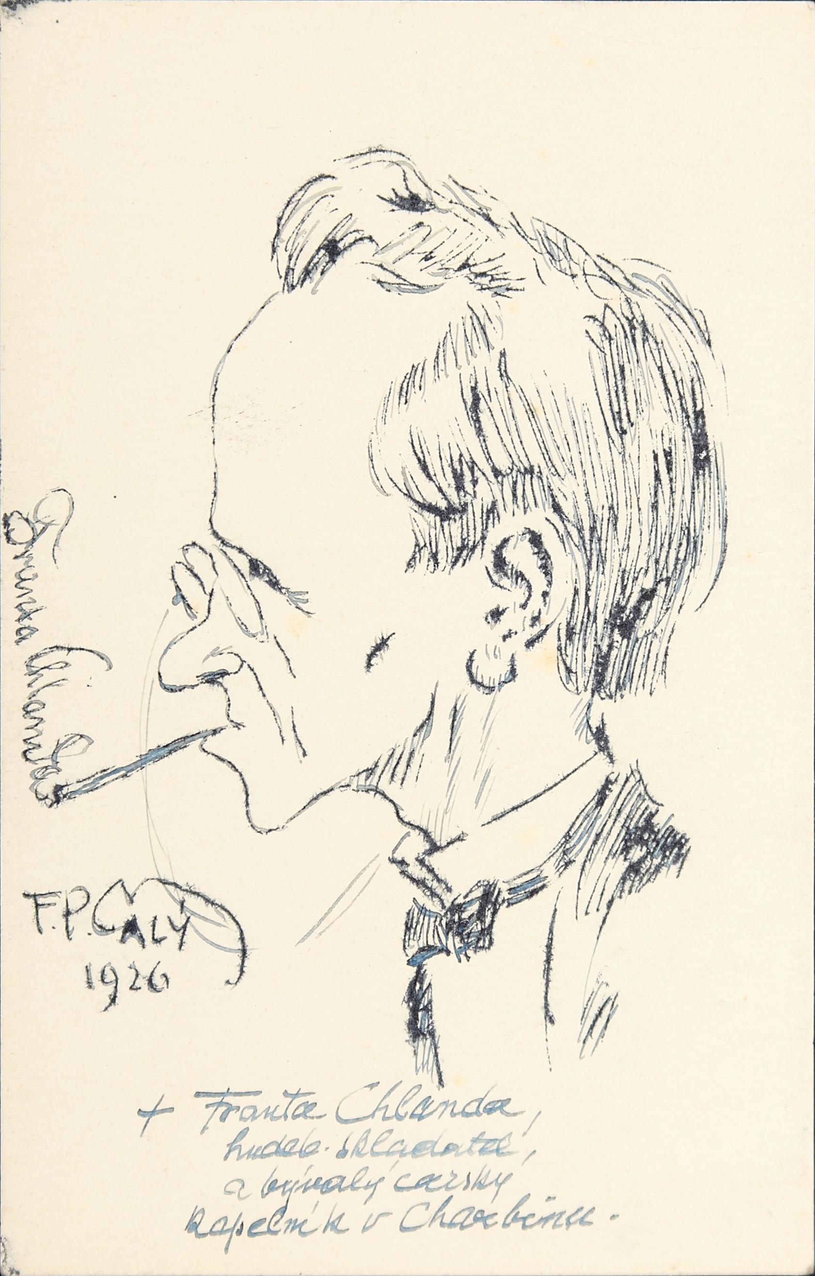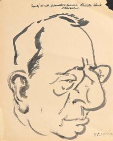 5. Karikatura Franta Chlanda, tuš, 14 x 9 cm