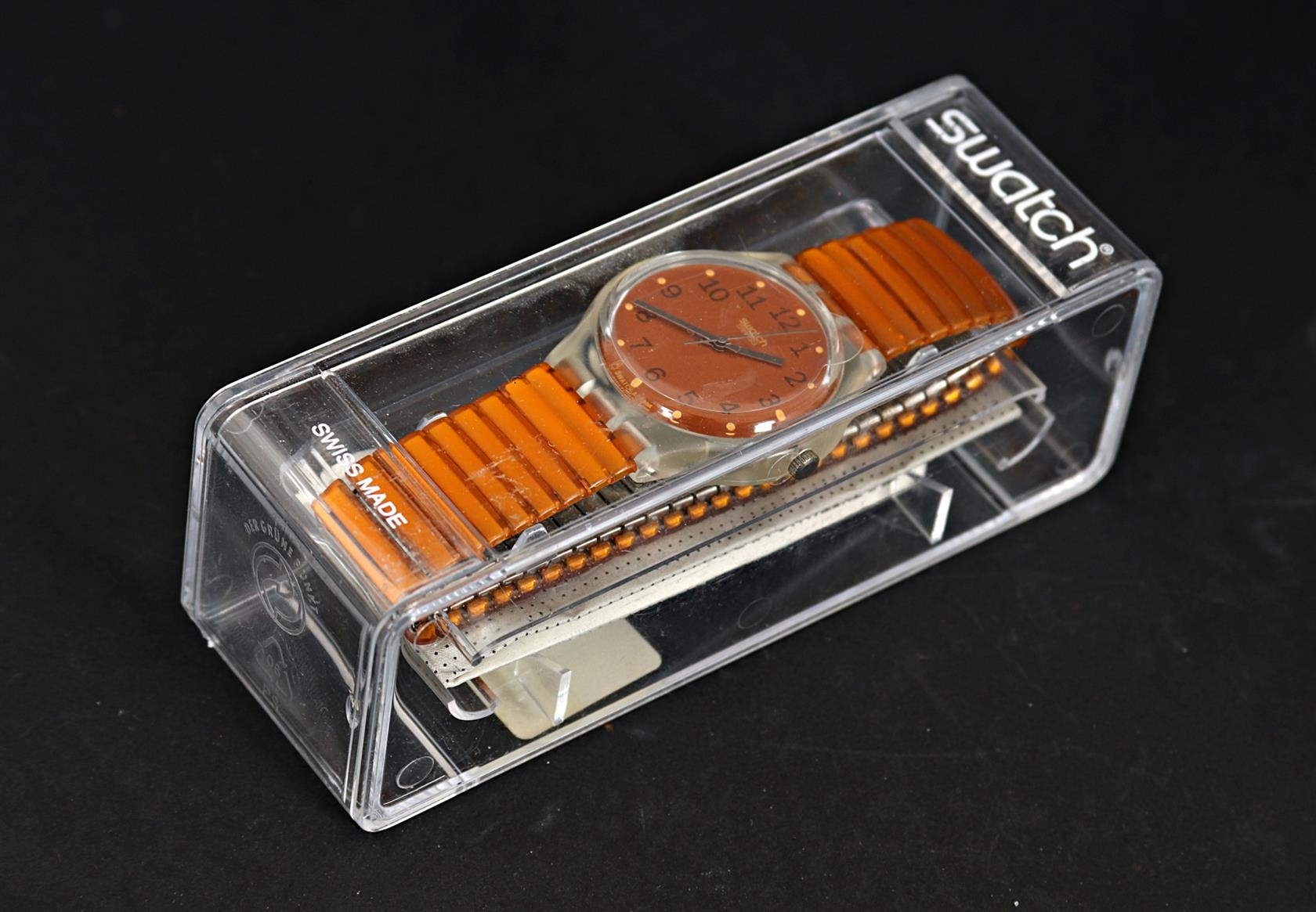 Nenošené swatch hodinky v originální etui z roku 1996, Water Resistant 30m, chod nevyzkoušen