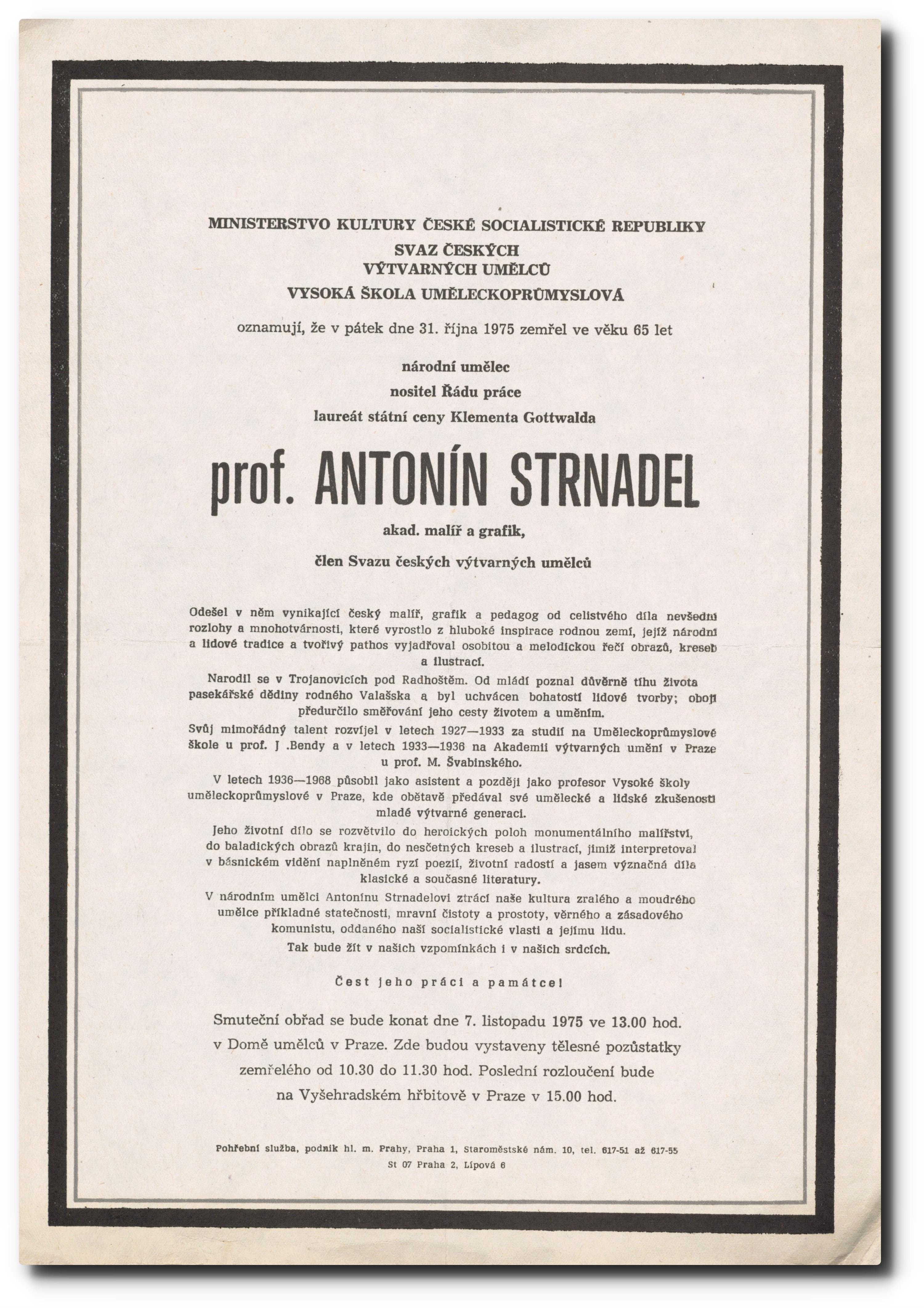 Originální smuteční oznámení.