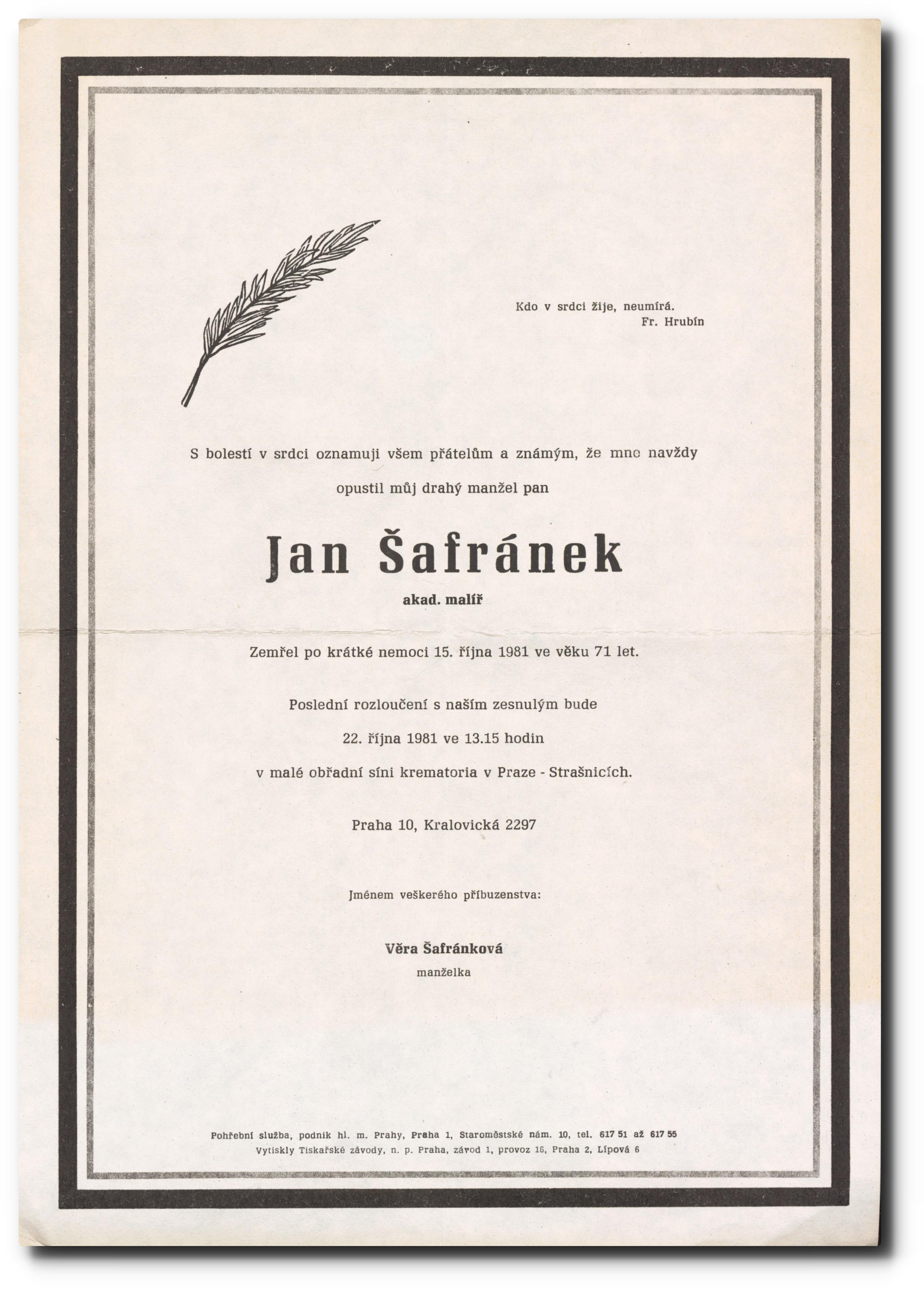 Originální smuteční oznámení.