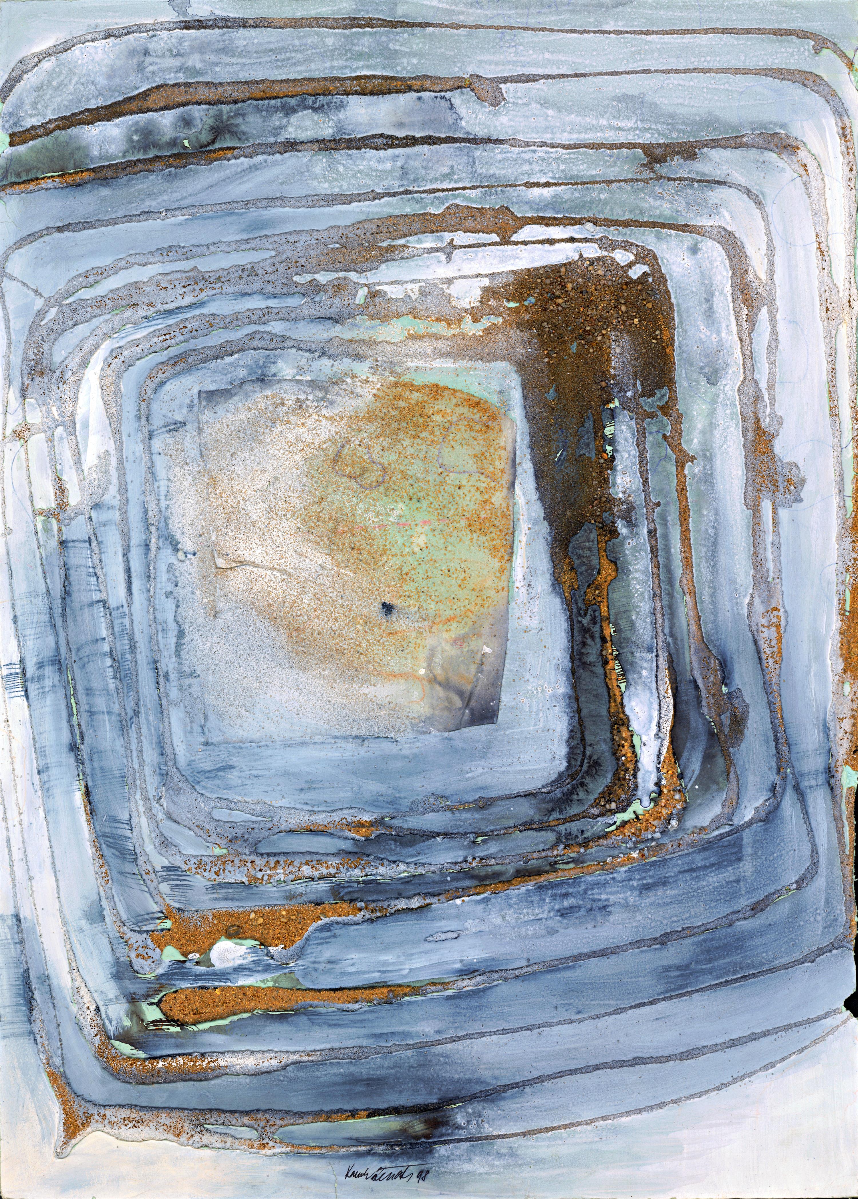 Technika: kombinovaná technika, materiál: písek, barva, karton, datace: 1998m