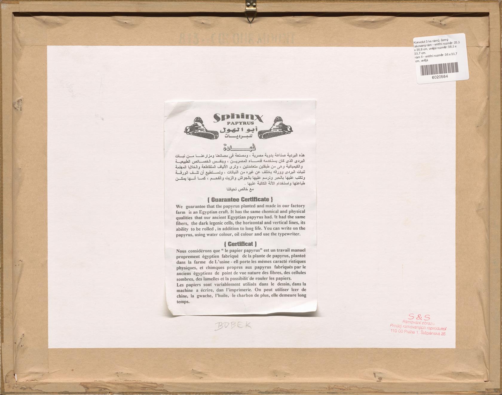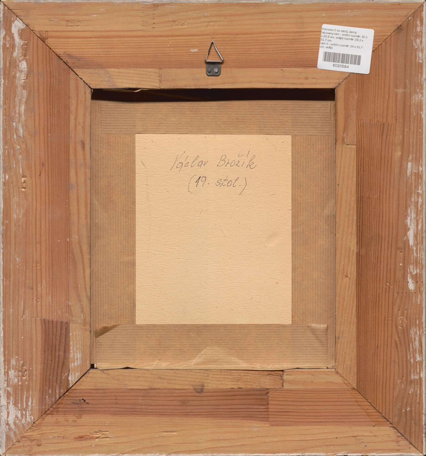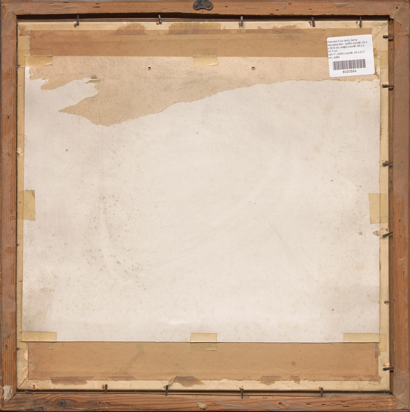 černý lakovaný rám - vnitřní rozměr: 23,5 x 20,8 cm, vnější rozměr: 38,5 x 35,7 cm.