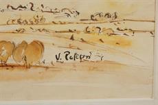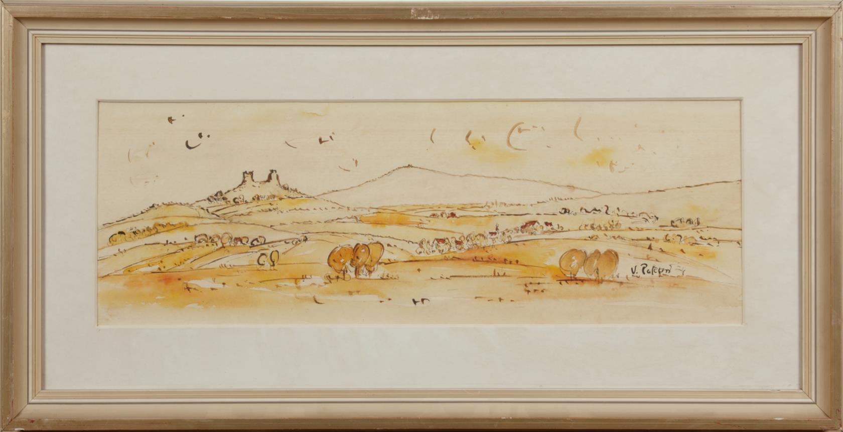 Konvolut dvou kolorovaných, lavírovaných kreseb, různé velikosti, signováno a datováno vpravo dole. Paspartováno, zaskleno a rámováno
