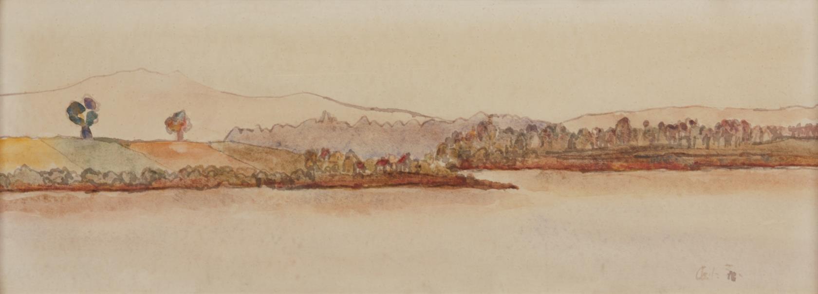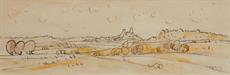 Konvolut dvou kolorovaných, lavírovaných kreseb, různé velikosti, signováno a datováno vpravo dole. Paspartováno, zaskleno a rámováno