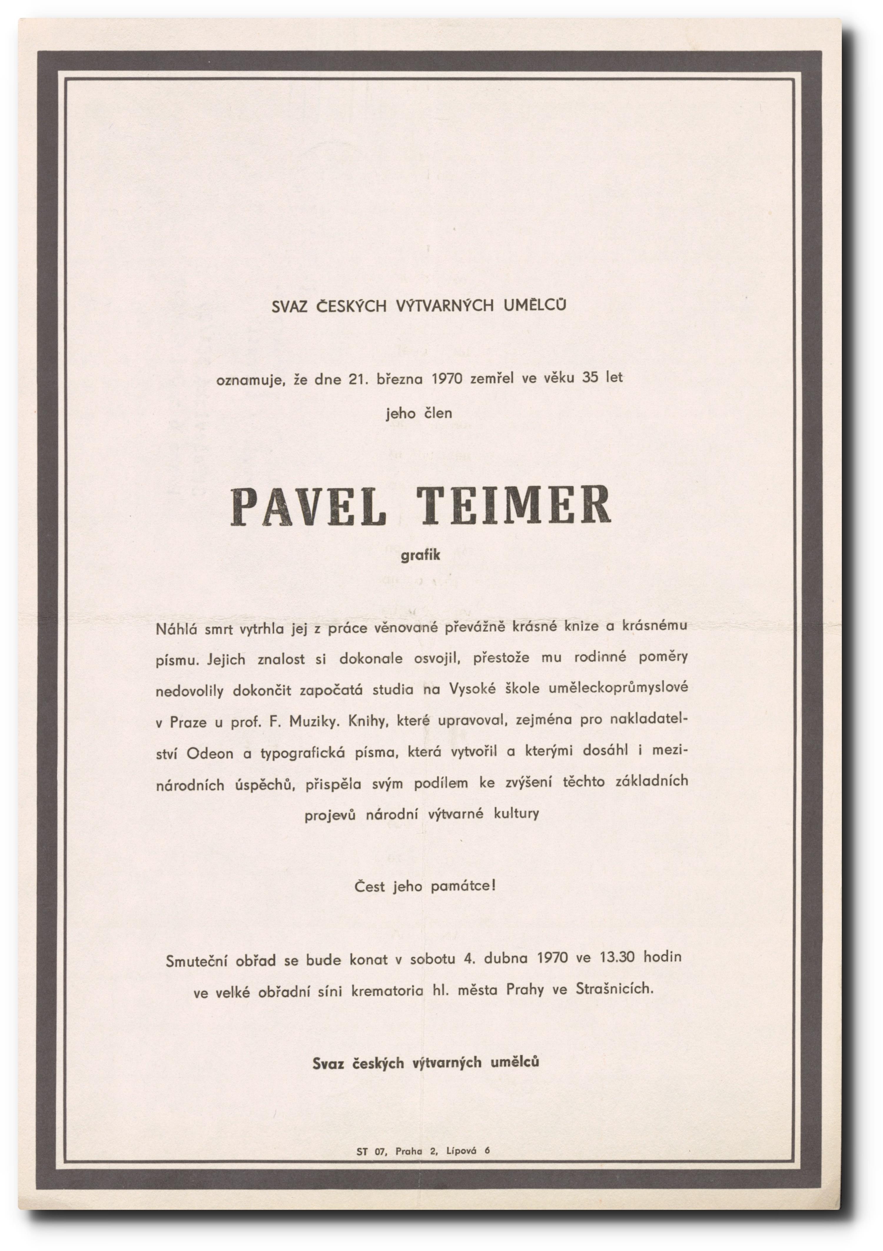 Originální smuteční oznámení.
