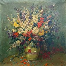 Signováno vlevo dole, plátno na několika místech odřeno, rámováno.