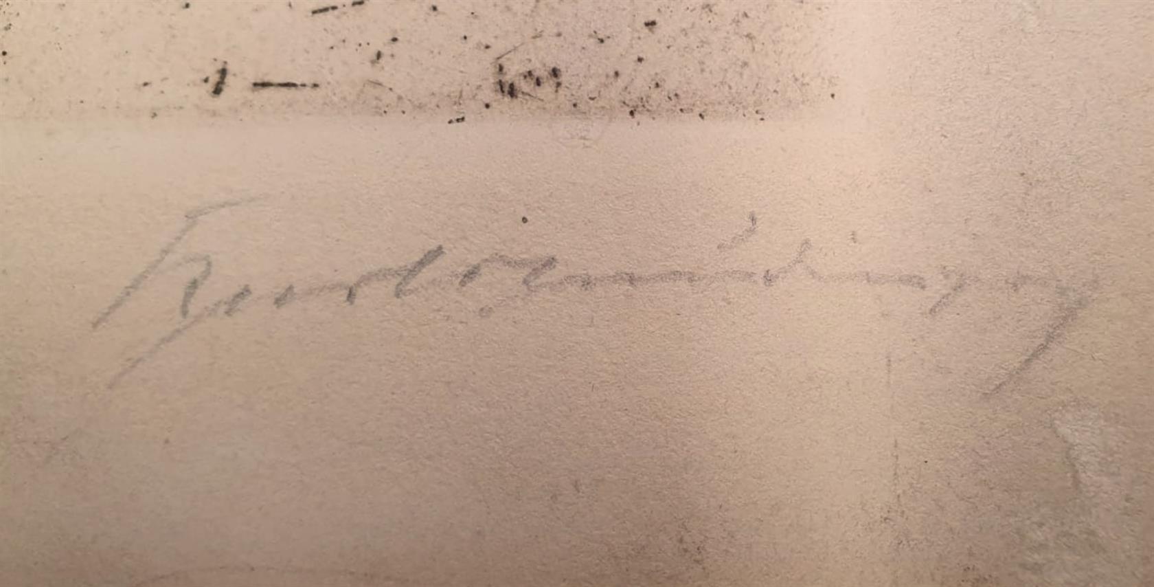 Signováno vpravo dole tužkou pod paspartou, rámováno, paspartováno, zaskleno