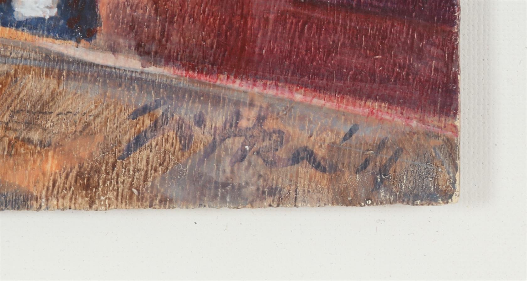 signováno a datováno vpravo dole, Překližka adjustována na desce