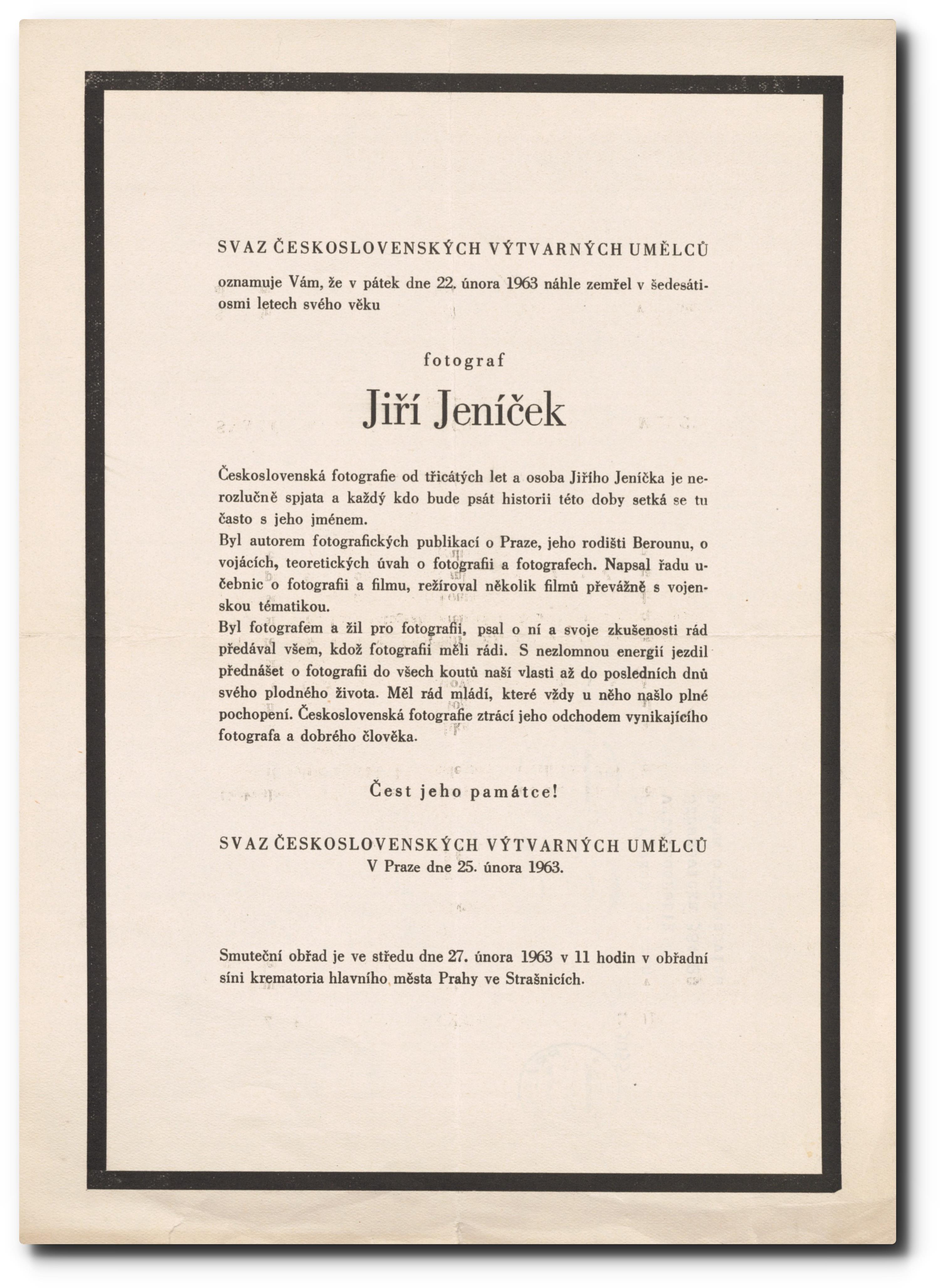 Originální smuteční oznámení.
