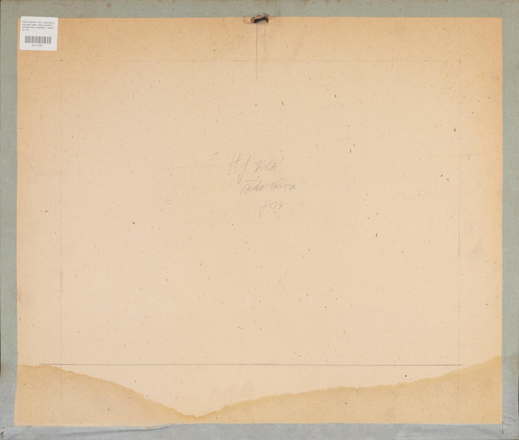 signováno a datováno tužkou dole uprostřed, paspartováno a zaskleno