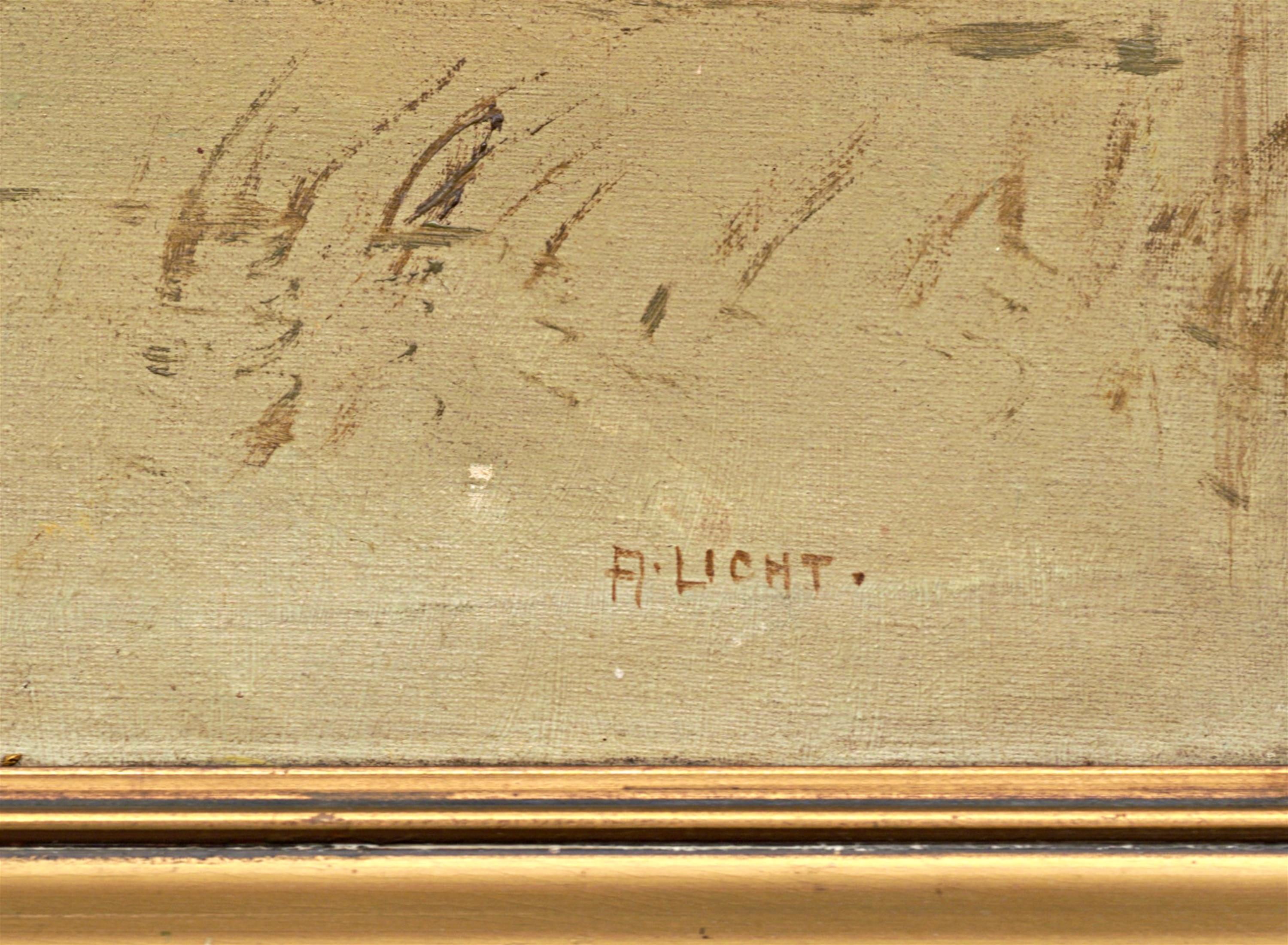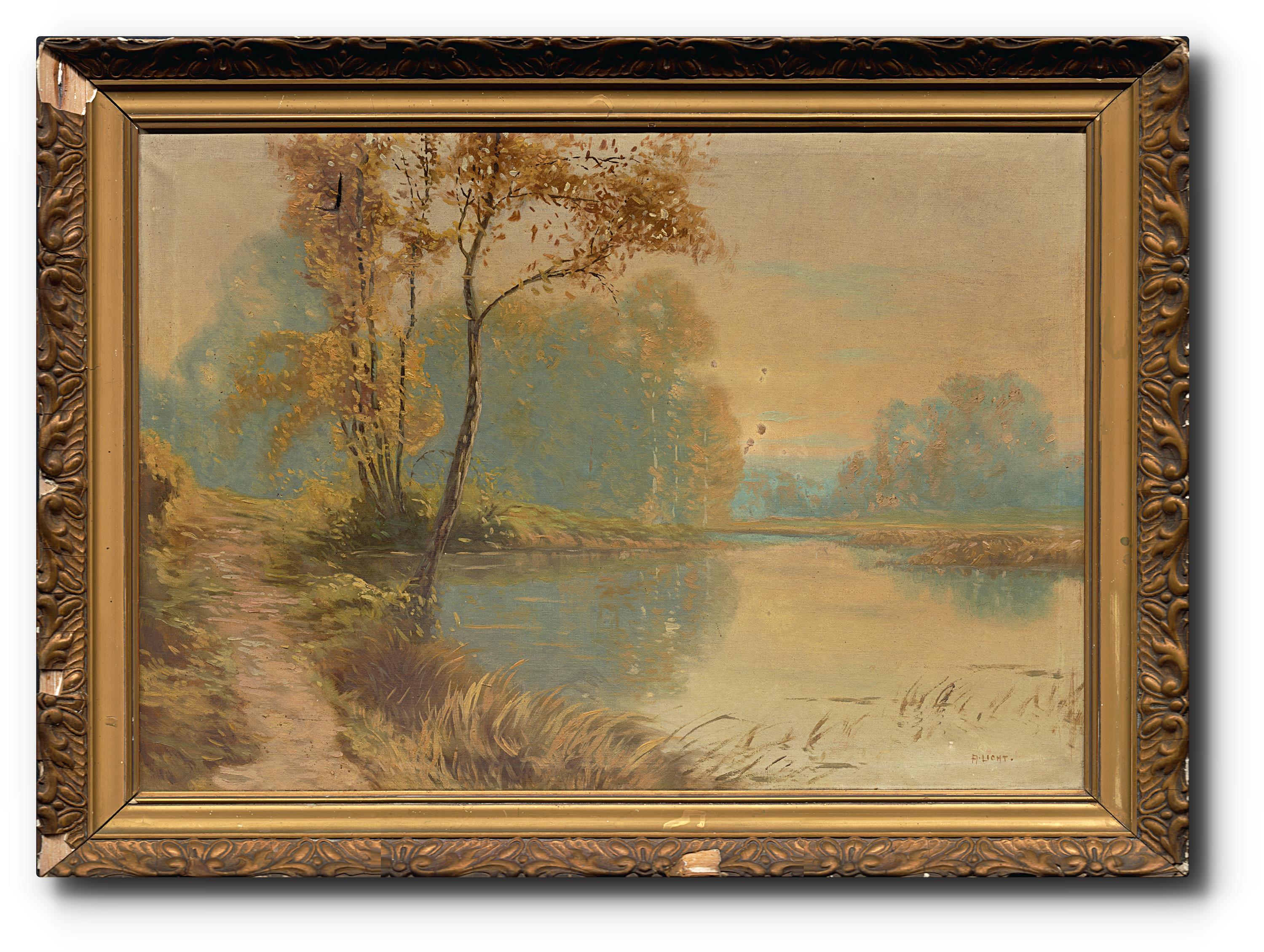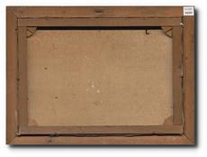 Signováno vpravo dole, protržené plátno, rámováno.