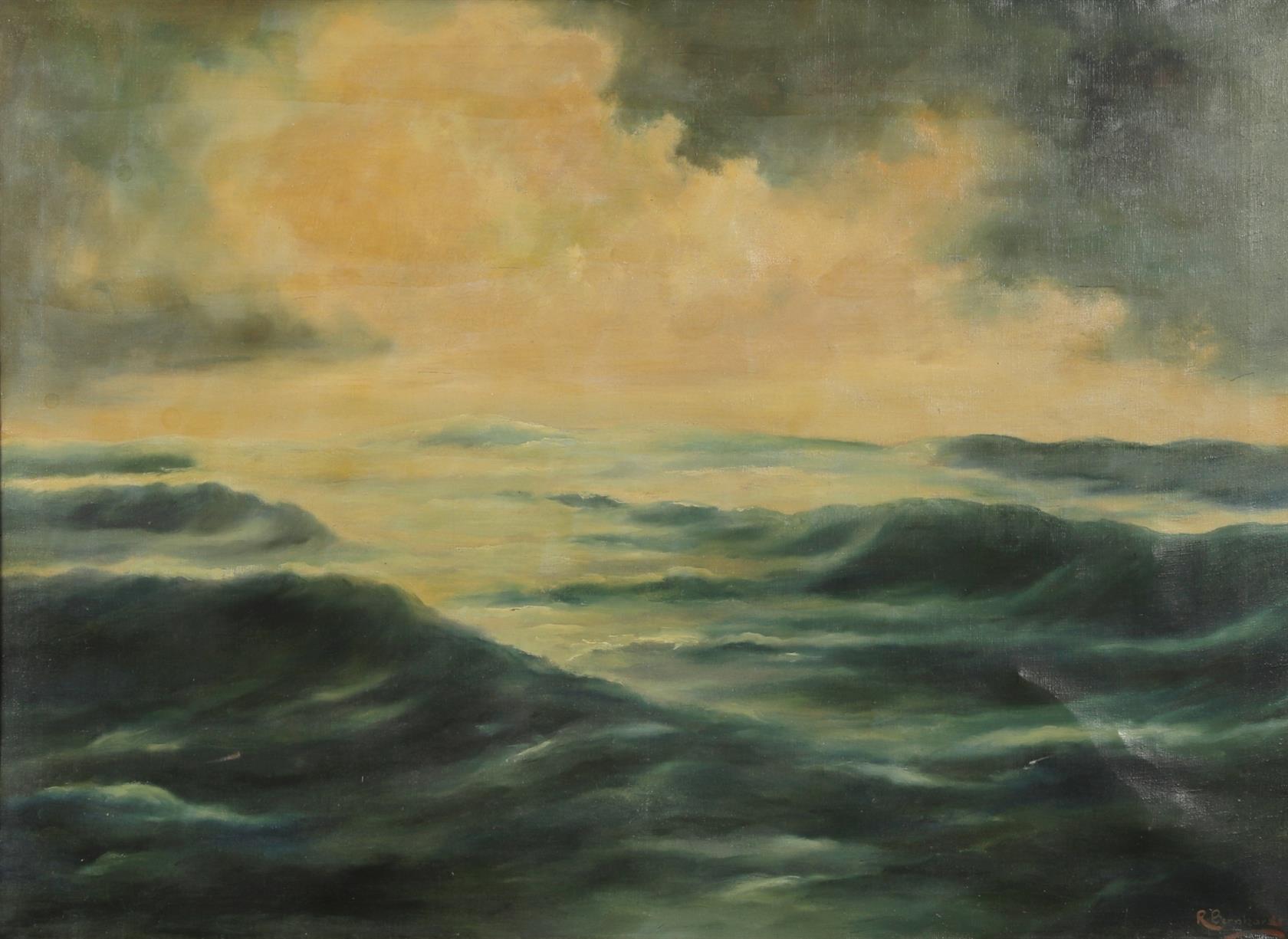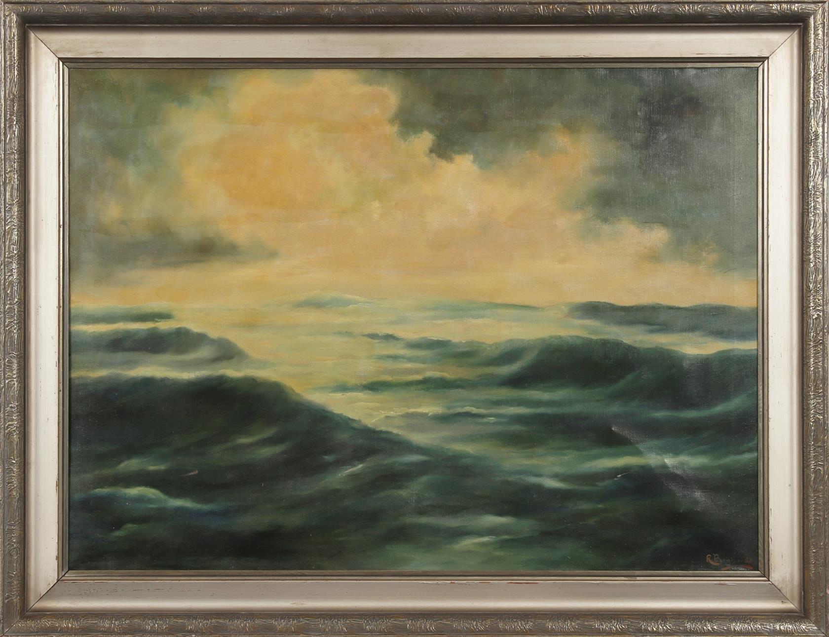 signováno vpravo dole, zažloutlý lak, rámováno, velký formát