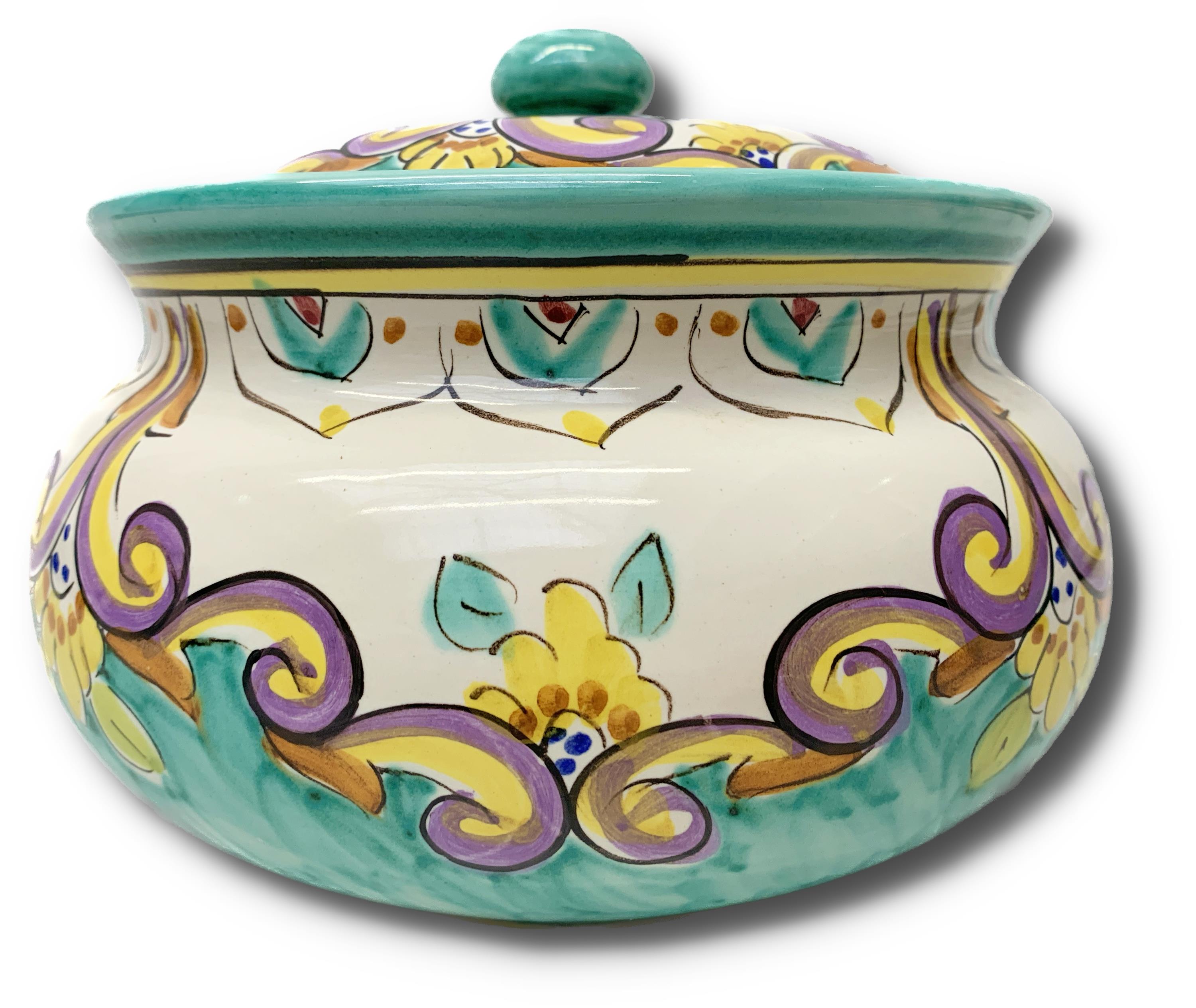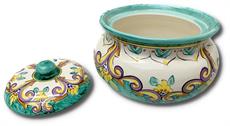 Glazovaná keramická dóza s víkem, značeno vespod.