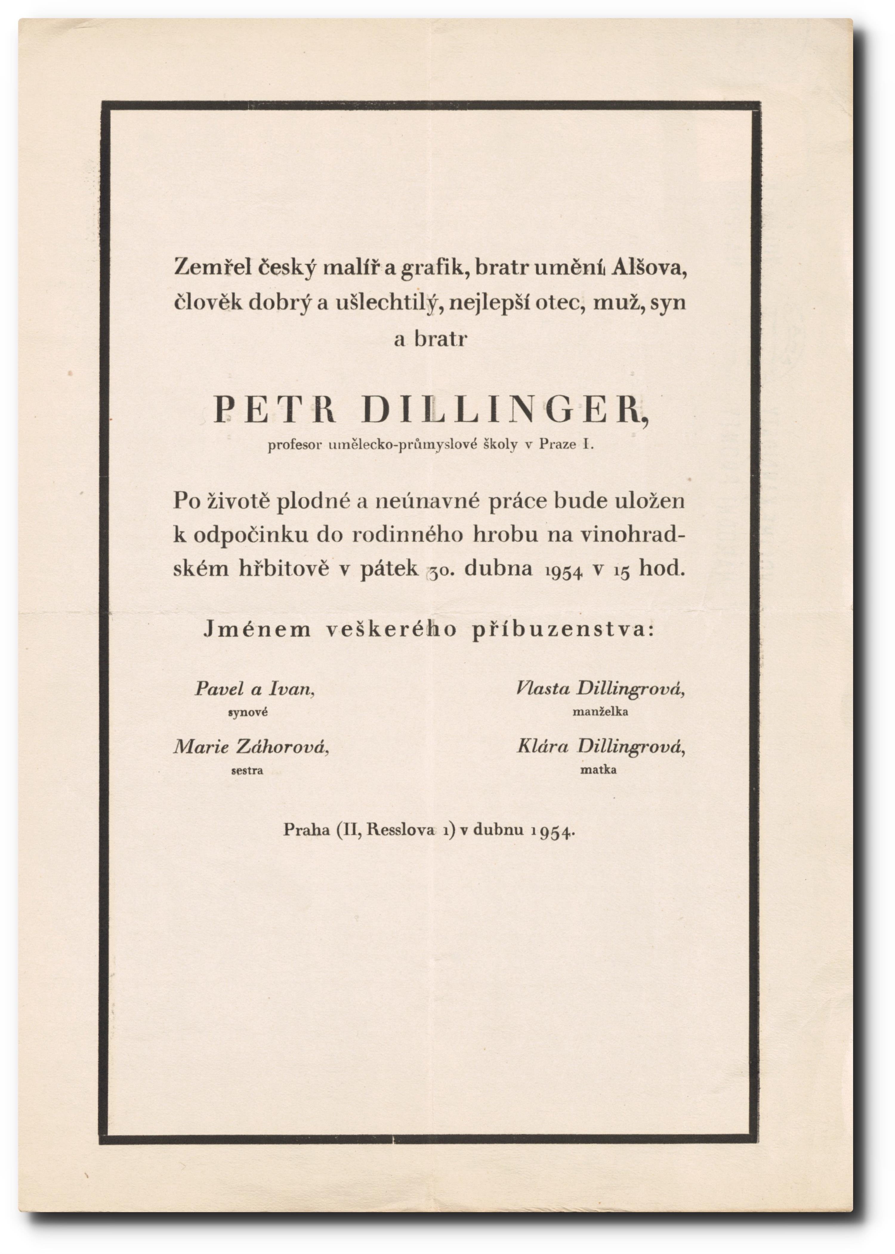 Originální smuteční oznámení.