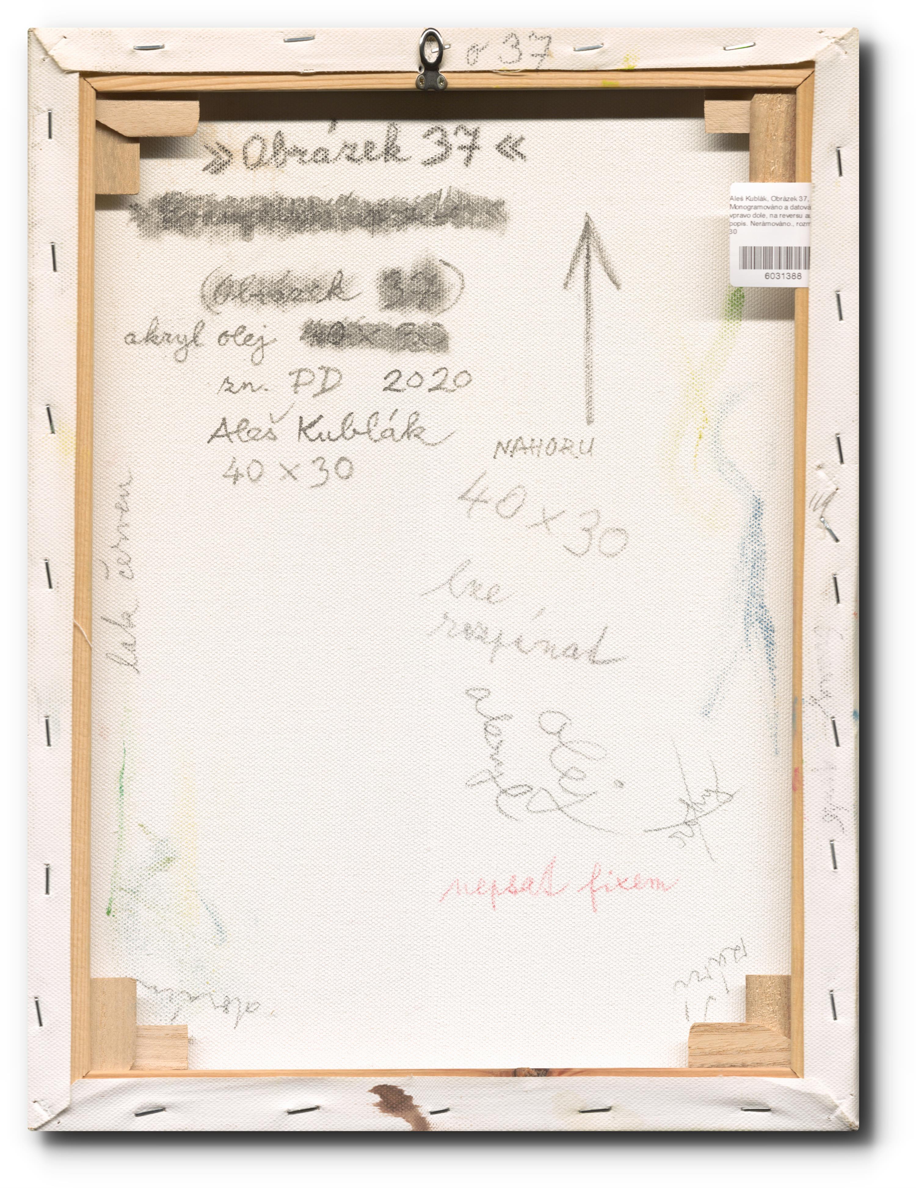Monogramováno a datováno vpravo dole, na reversu autorský popis. Nerámováno.